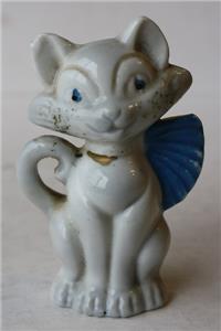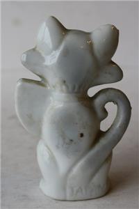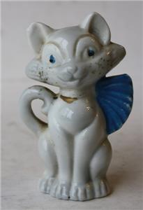 Here is a great little Vintage Ceramic-Porcelain Hand Painted Made in Japan Cat-Kitten Cartoon Comic Style figurine. It is Adorable. It is marked Japan on the back. It measures about 3 1/2 inches tall by about 2 inches wide. It does have a chip on teh top of 1 ear. Grab this great Cat-Kitten Figurine collectible while you still can it will not last long.