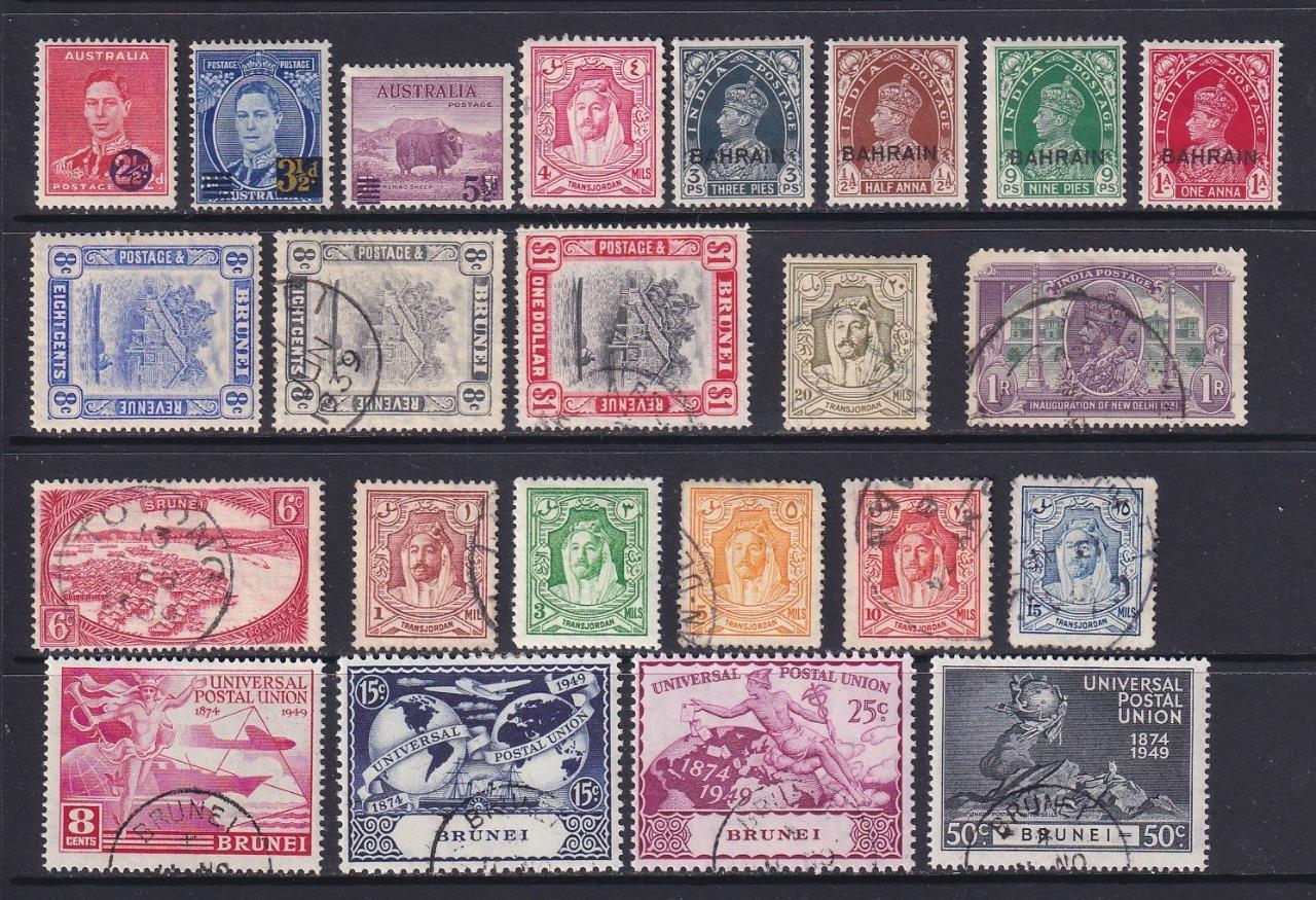 Inc Trinidad, Bahrain, Transjordan etc. GV, GVI stamps. MM, Used, mixed condition, odd fault, see scans. Cat approx £380.