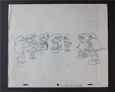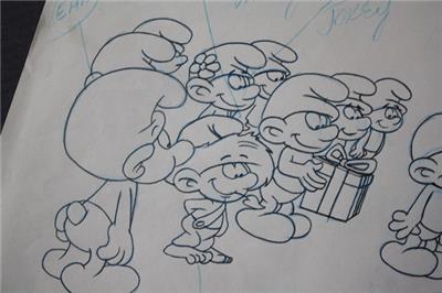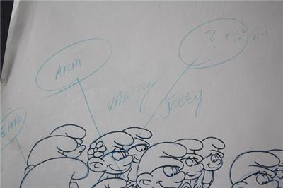 Here is a great vintage 1980's Hanna Barbera THE SMURFS Cartoon Pre Production Drawing Sketch picturing many Smurfs Smurfette Jokey Smurf Vanity Smurf and many more. It is RARE. It is in Good Used Condition. It is unmarked-SEE ALL PHOTOS. It measures about 10 1/2 inches tall and about 12 1/2 inches long. Grab this great vintage collectible while you still can it while it last long.