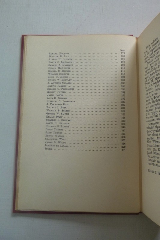 Anson Jones Press, Salado, TX. Hardcover, no dust jacket, limited printing of 500 copies under a 1959 (2nd) copyright; 1st copyright was 1944. 8vo with red boards, gilt lettering in a black title block on the spine, deckled outer and bottom edges, 398 pages including the Index. This copy is in very good condition with clean & unmarked text, tight binding, and minimal wear to the cover.