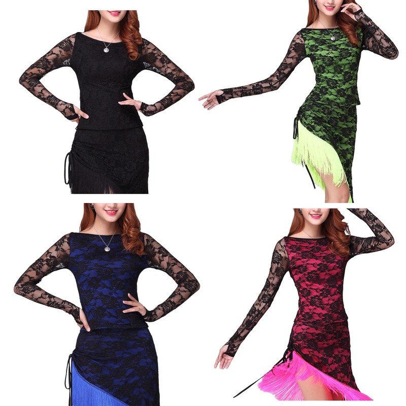 Womens Pullover Lace Tops See Though Blouse Training Modern Ballet Rose Samba