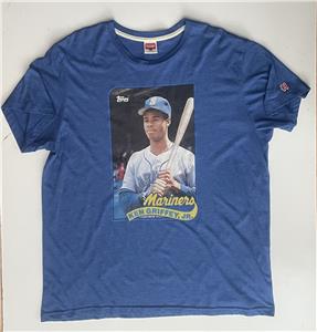 · Style: Player t-shirt ~ Ultra-soft blended fabric keeps you cool and dry ~ Ken Griffey Jr 1989 Topps rookie card graphics screen-printed on the chest ~ Crew neck design has a rib-knit collar and short sleeves ~ Embroidered brand logo patch sewn on the left sleeve