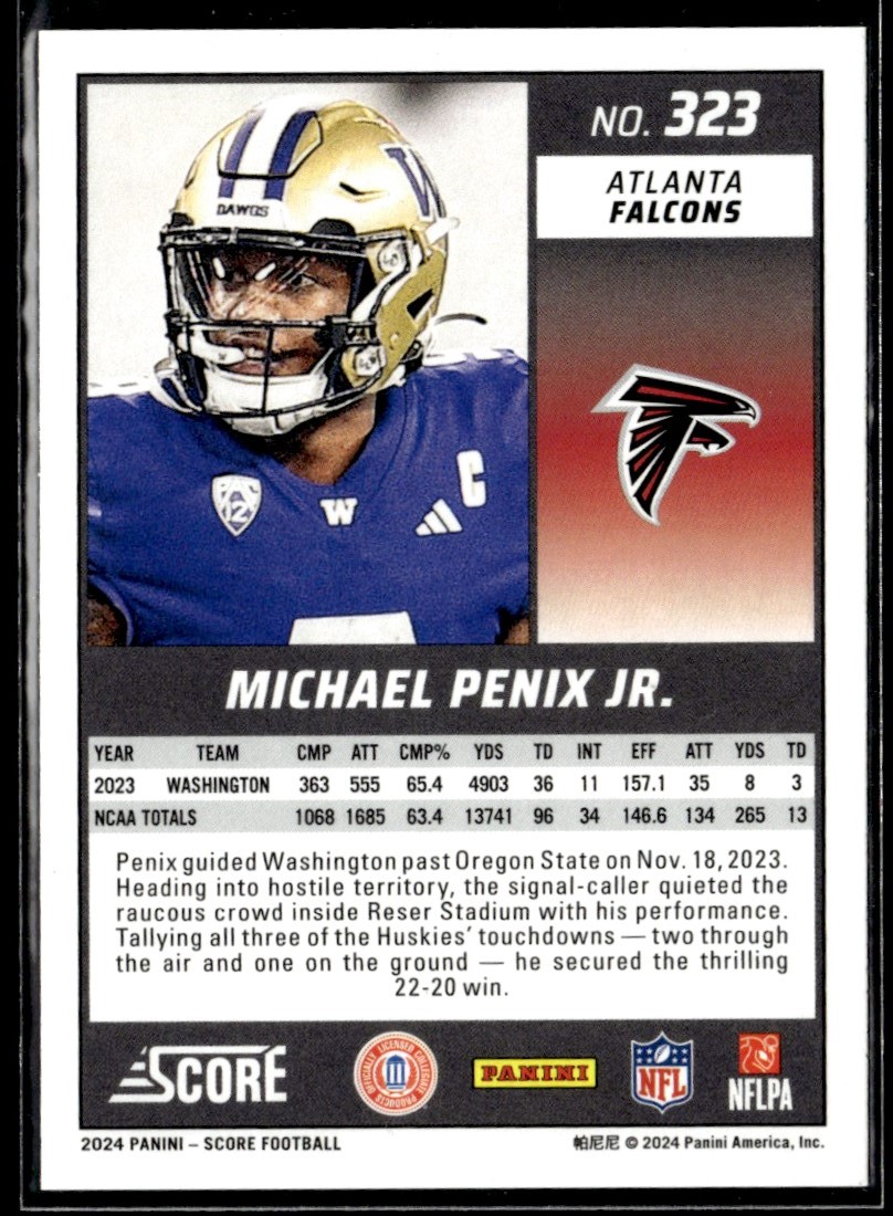 2024 Score Rookie Michael Penix Jr. RC Atlanta Falcons #323