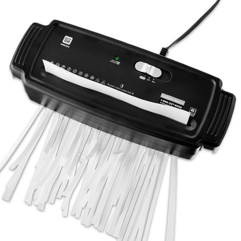 The Pen+Gear 6-Sheet Strip Cut Credit Card & Paper Shredder is designed to provide reliable security for your personal and professional documents. Capable of shredding up to six sheets of paper simultaneously into narrow 1/4-inch strips, it effectively reduces the risk of identity theft by destroying sensitive information. Beyond paper, this shredder also processes credit cards and staples, offering comprehensive protection for various materials. Its 8.7-inch wide throat accommodates larger documents with ease, while the extendable arm allows the unit to fit securely over most wastebaskets for convenient disposal. The shredder operates at a shredding speed of 9.8 feet per minute and supports a continuous two-minute runtime before requiring a cool-down period. LED indicators alert users when the unit is powered on or overheating, ensuring safe operation. Compact and practical, this shredder is an excellent addition to any home or office environment seeking dependable document security.