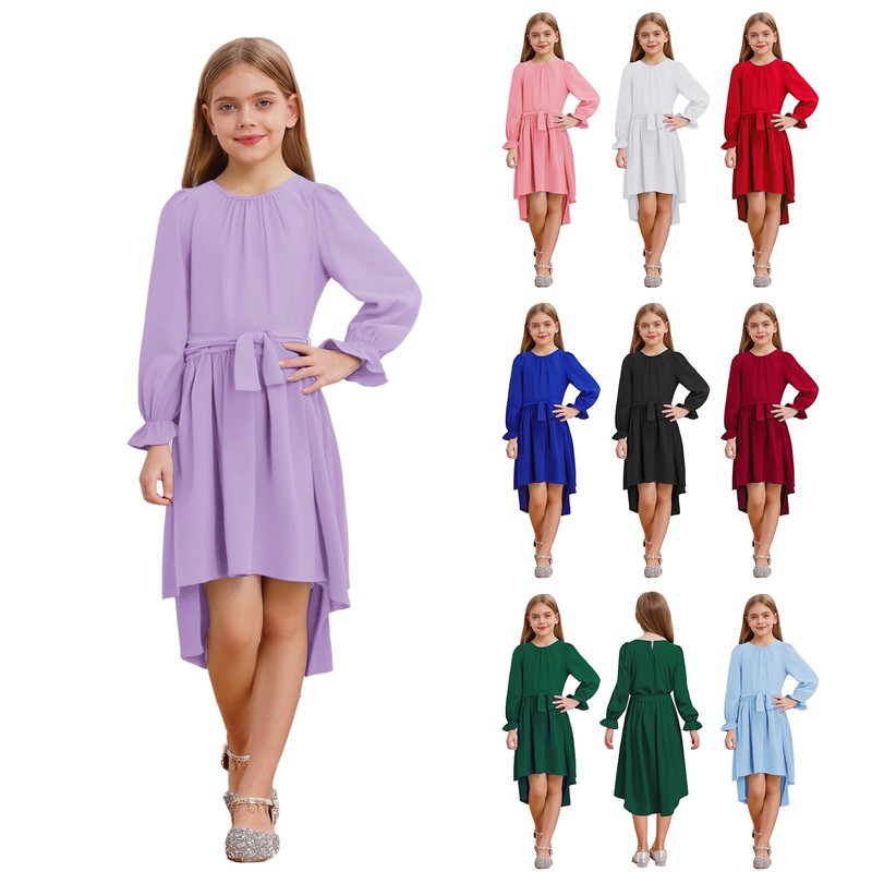 The high-low hem adds movement and a sense of playfulness, making it a stylish choice for young girls.