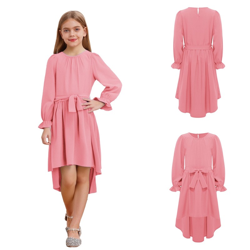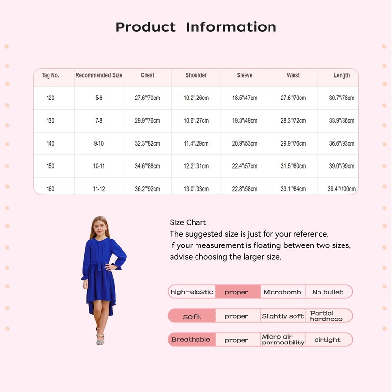 Set Include: 1Pc Girls Dress, 1Pc Belt