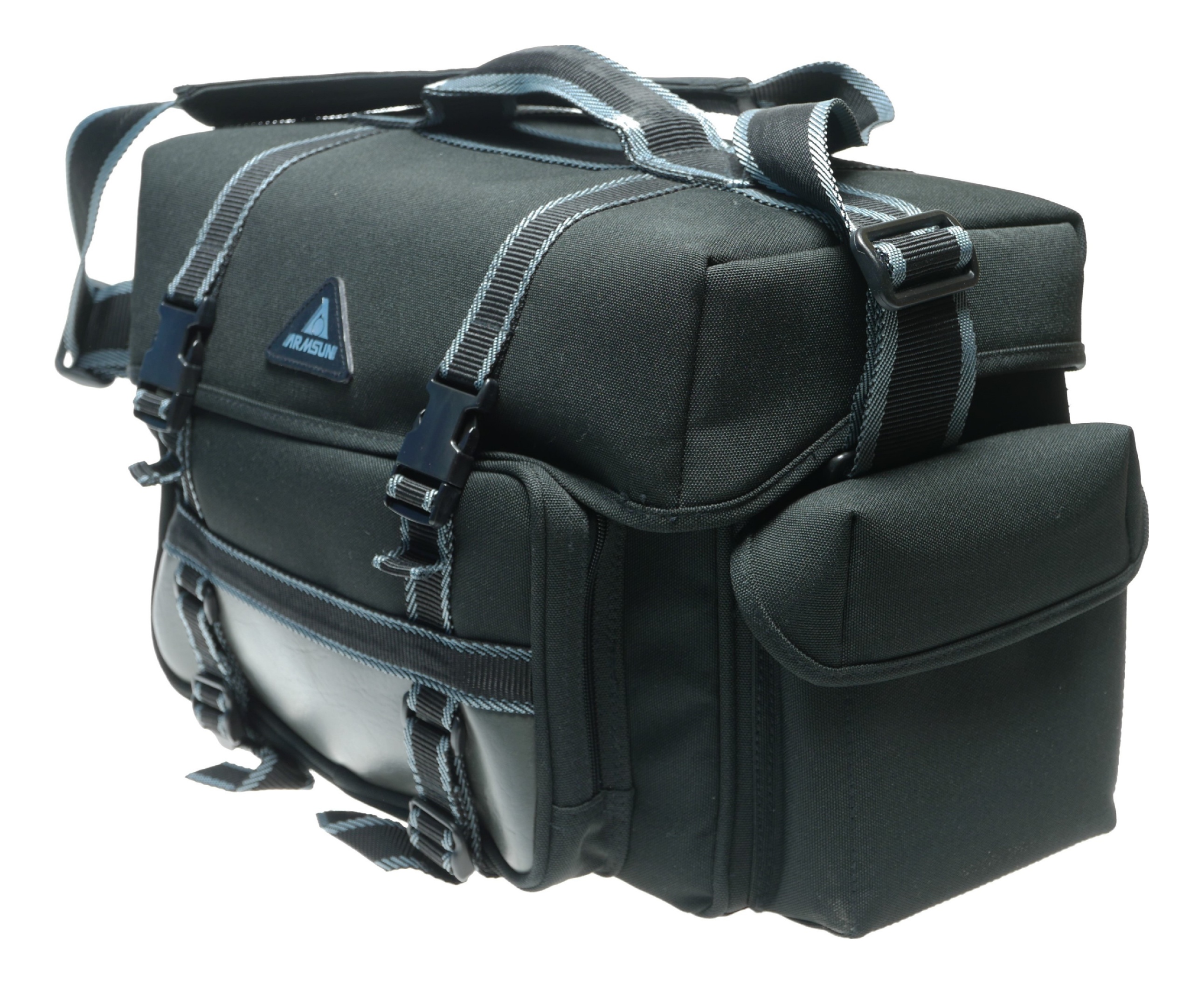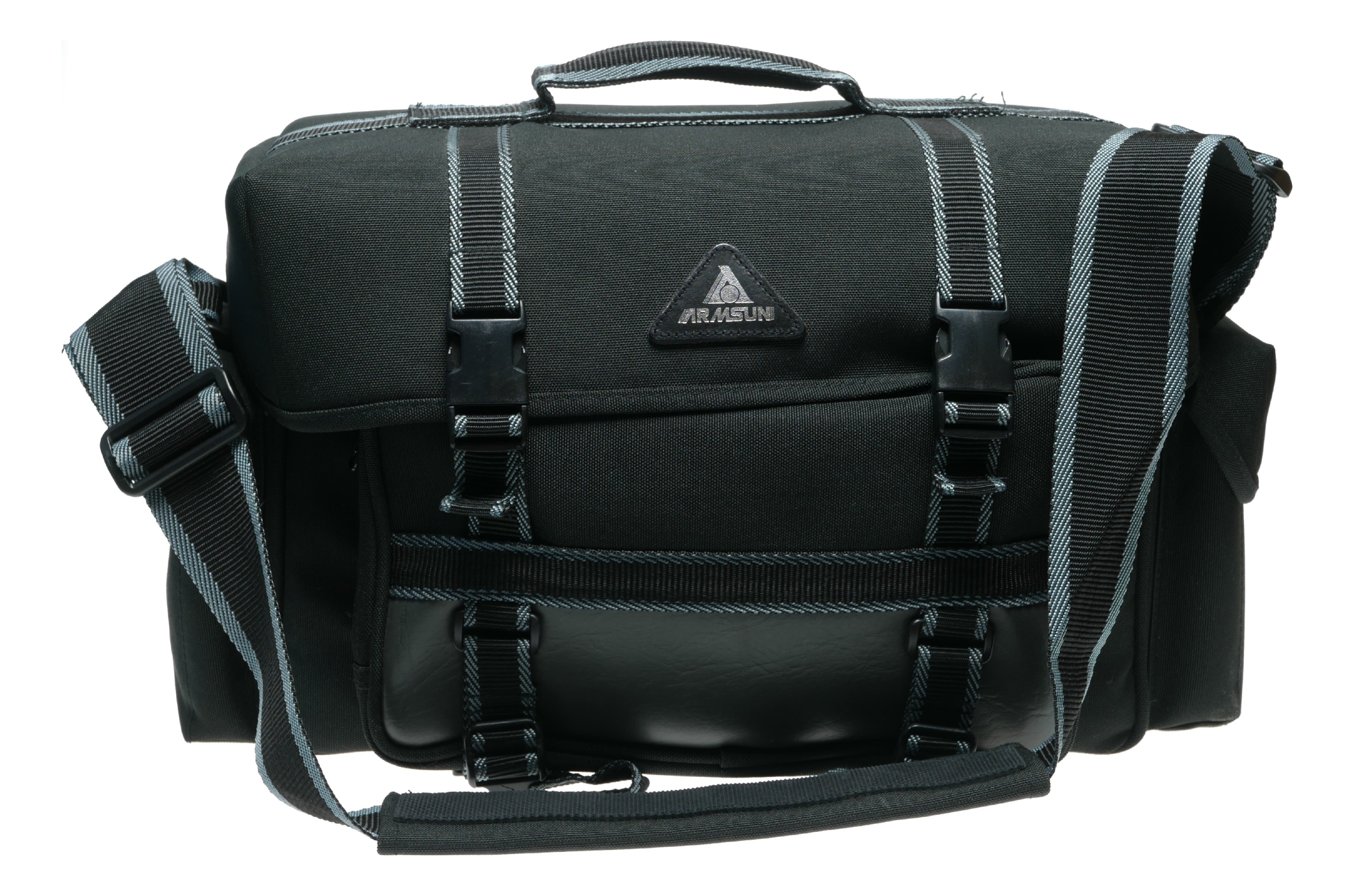 This is a durable and spacious camera bag from the brand ARMSUN. This messenger-style shoulder bag is designed for photographers who need a reliable way to transport their gear. It features a padded interior with a removable insert and adjustable dividers, allowing you to customize the layout to fit your specific camera, lenses, and accessories. The bag has multiple exterior pockets for smaller items like memory cards, batteries, and filters. It is suitable for a DSLR or mirrorless camera setup.