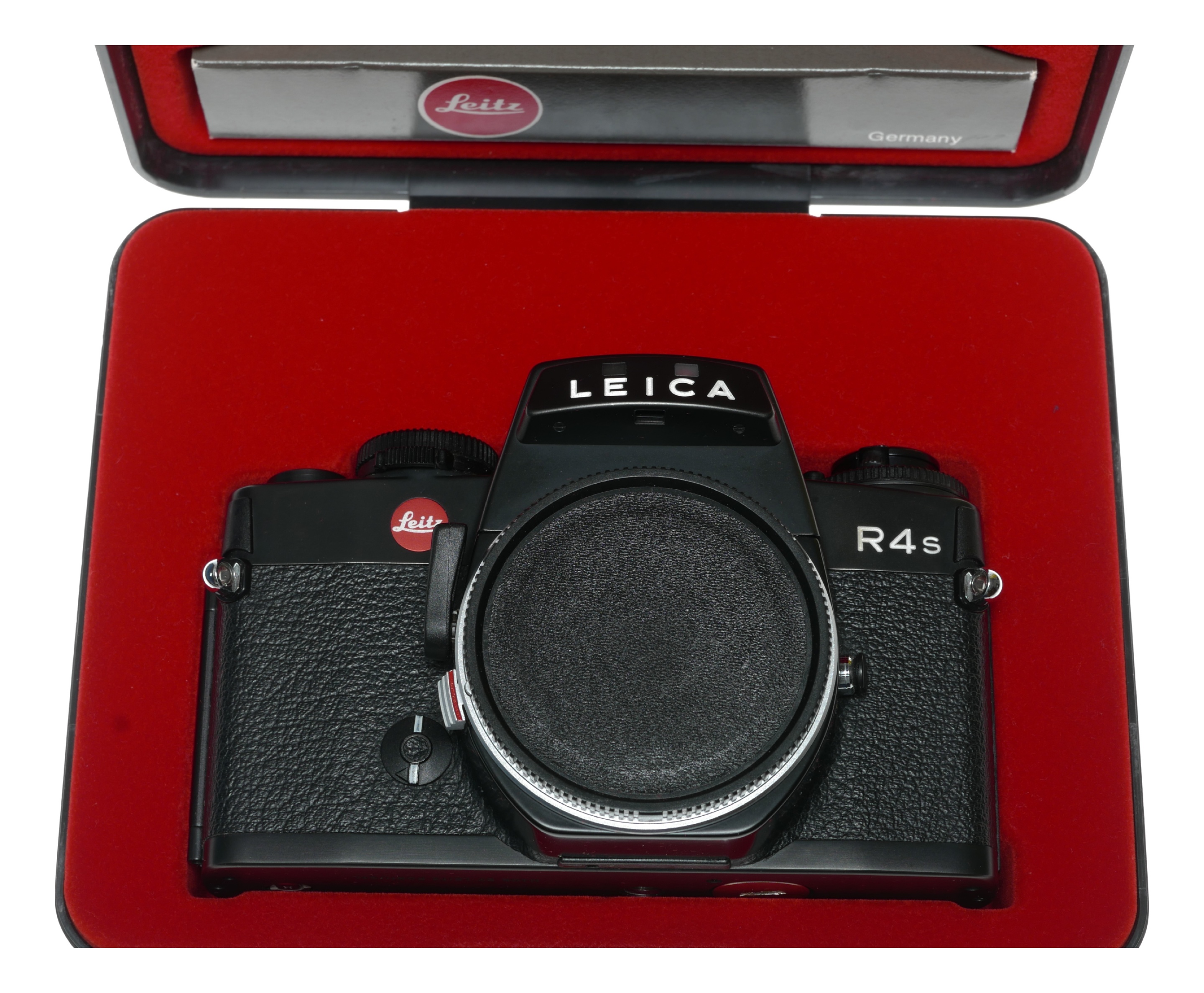 This is a genuine Leica R4s 35mm film camera body, a classic manual focus SLR from the legendary German manufacturer. The R4s is a simplified version of the R4, providing photographers with the essential features for reliable shooting without unnecessary complexity. The camera's robust build and intuitive controls are a testament to Leica's reputation for quality. It is a perfect choice for both collectors and photographers who appreciate the tactile experience of a high-quality manual film camera. This camera is presented in a very desirable condition, complete with its original box and instruction manual.