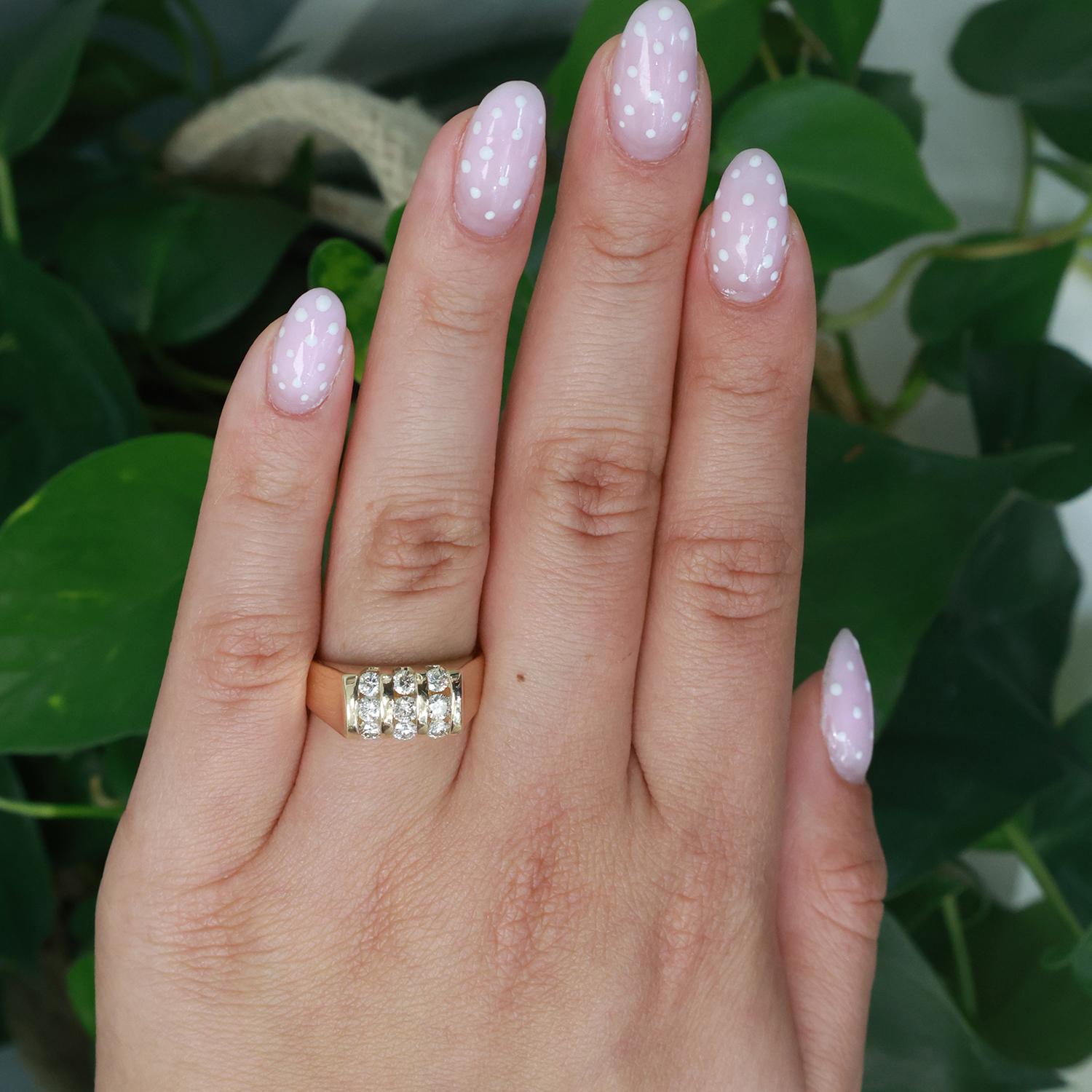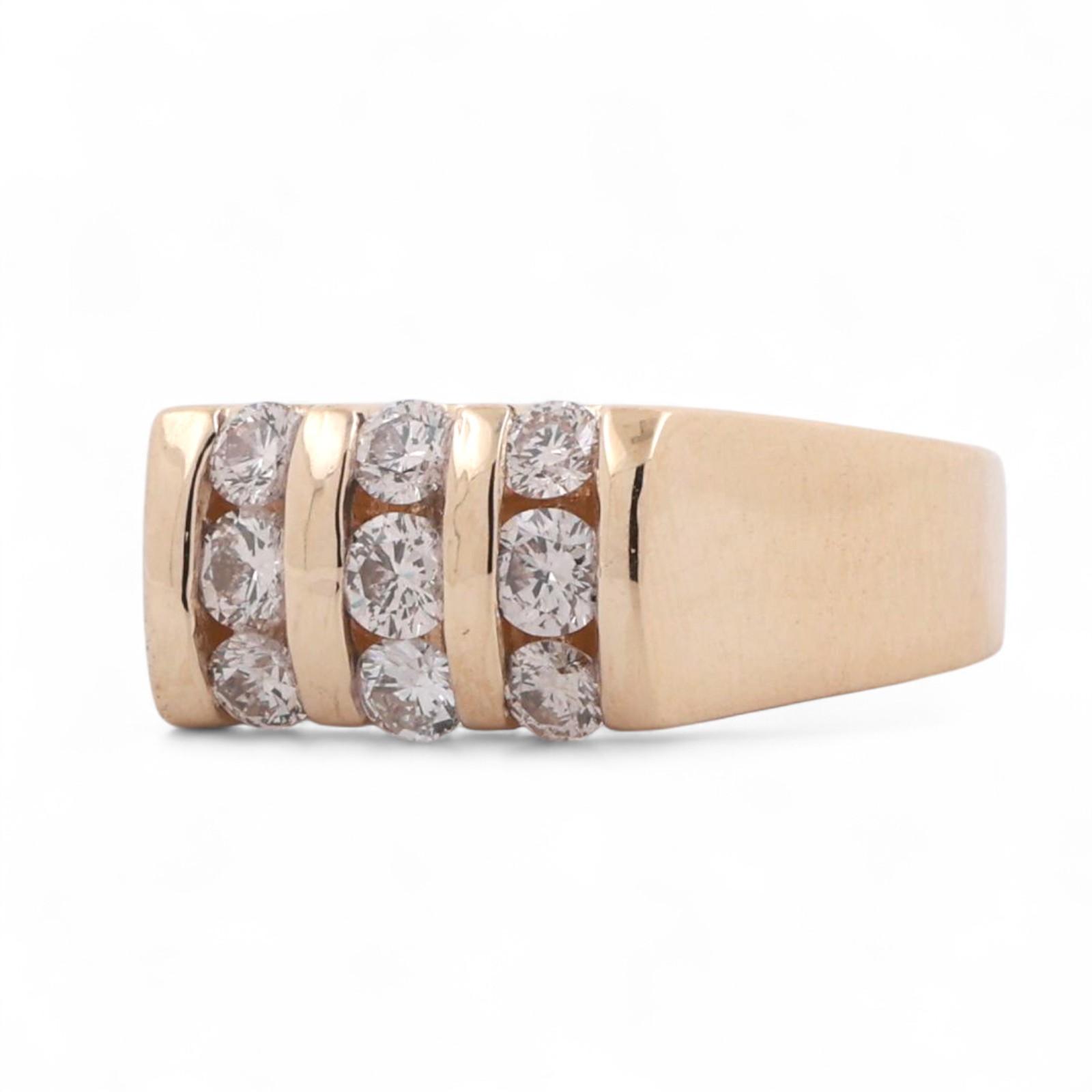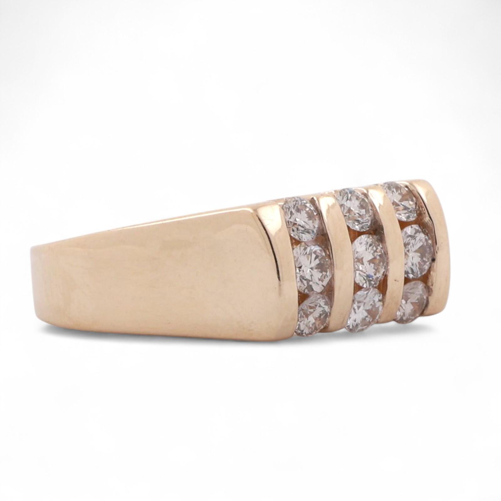 3-Row Diamond Band Ring 14K Yellow Gold 1.00 TW Round Diamonds Size 8.25 Unisex Estate