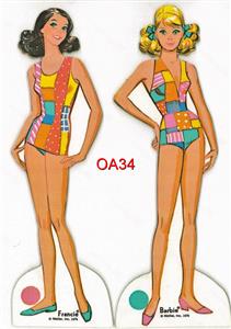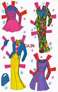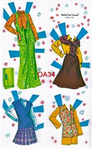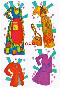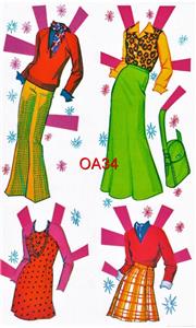 This very colorful loose page reproduction was originally published in 1976. This nostalgic loose page reproduction set originally came in a box and contains two pretty dolls and a large totally uncut wardrobe of colorful clothing!