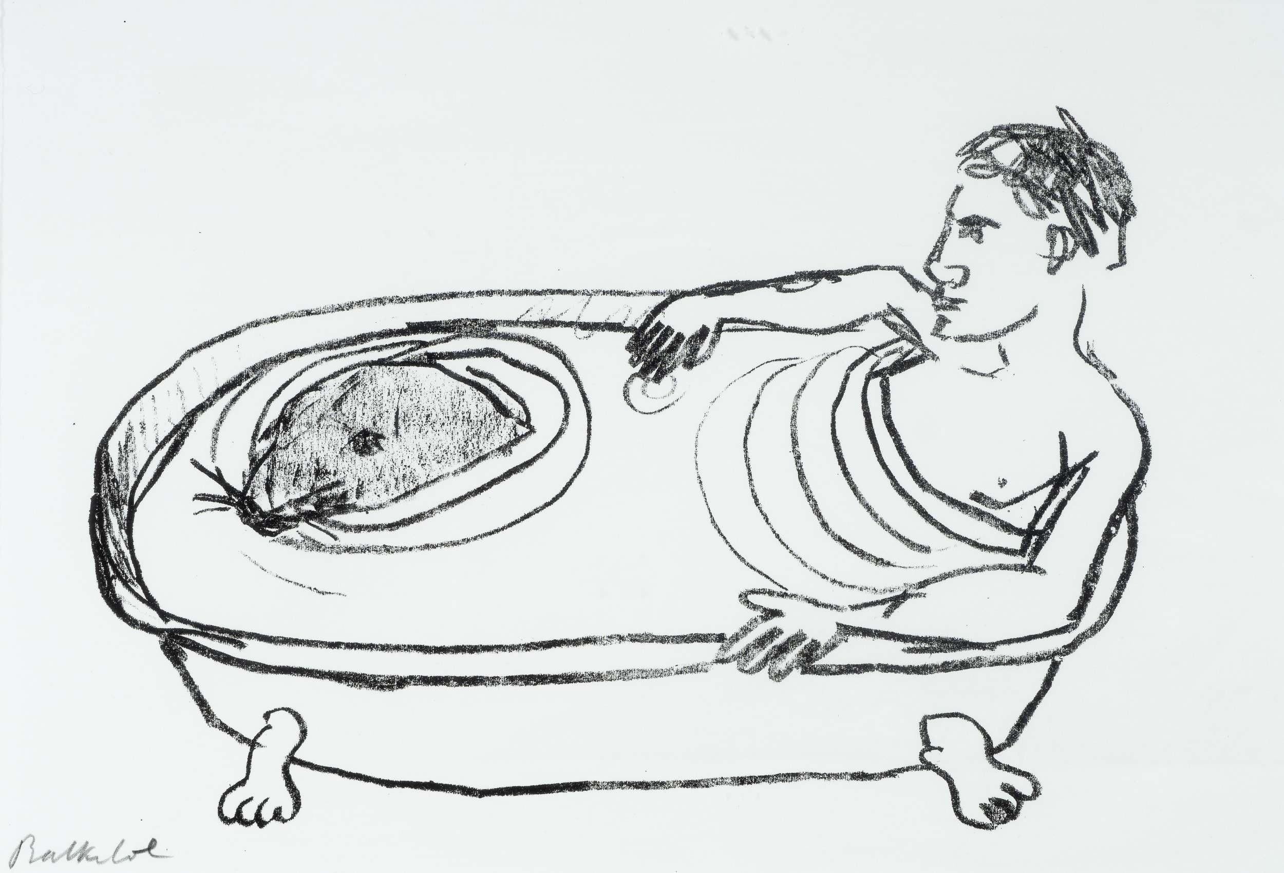 Stephan Balkenhol (born 1957 ), Seal and man in the bathtub, 1993, Lithography