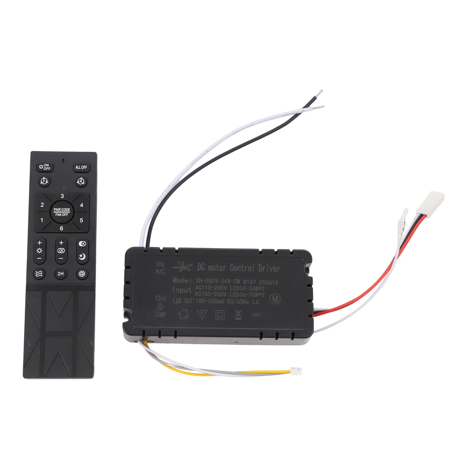 *Note: When using for the first time, the remote control needs to be matched with the receiver inside before it can be remotely controlled How to pair the XH bedroom remote control: Turn off the power on the wall, turn it on again, press and hold the middle round button "PAIR CODE/FAN OFF" for 5 seconds, the receiver will beep twice, and pairing is successful!