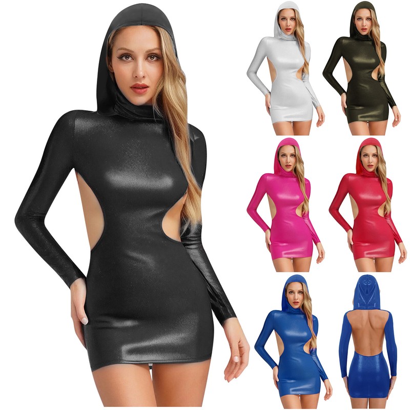 Keyhole cutout in the front, backless and halter neck design, tie closure at back.
