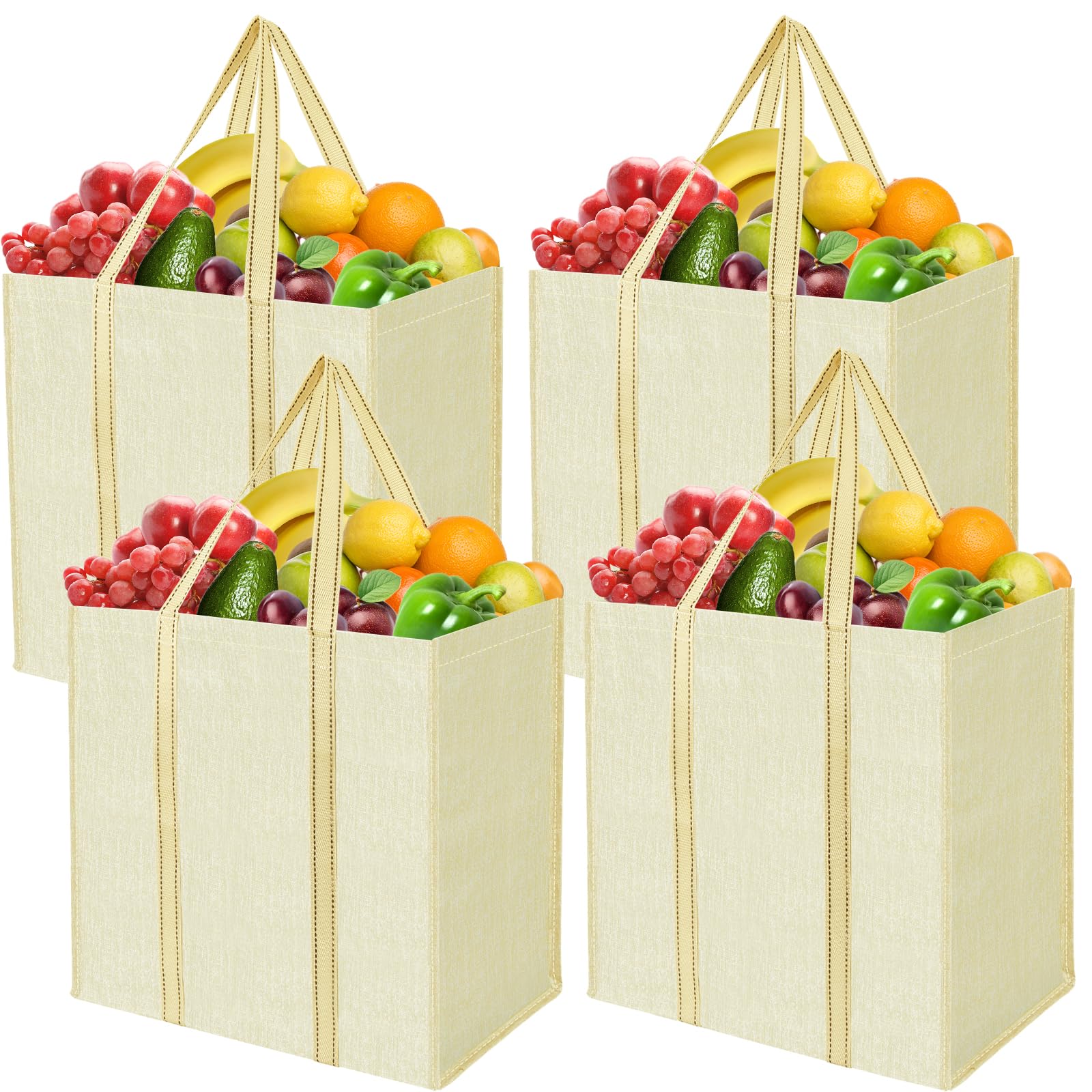 - [SPACIOUS & CONVENIENT] With a large capacity of 14.5" x 14" x 10", our reusable grocery bags can hold a lot of items, making it perfect for grocery shopping, farmers market trips, and other outings. The reusable bags also features sturdy handles that are easy to grip and carry.