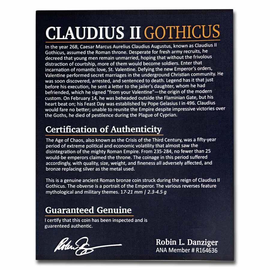 Claudius II, known as Gothicus, earned his title after defeating the Goths at the Battle of Naissus in AD 269, one of the most significant Roman military victories of the 3rd century. Though his reign was brief, Claudius restored stability to the empire during a turbulent period and laid the groundwork for his successors.