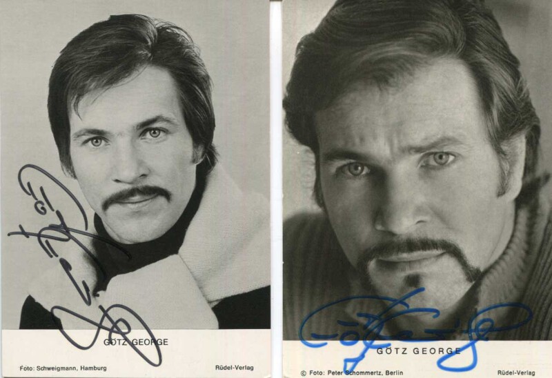 Two signed postcard photographs, showing Götz George in close-up portraits, (both) 4 x 5,75 inch, signed in blue & black felt tip, (both) in very fine condition.