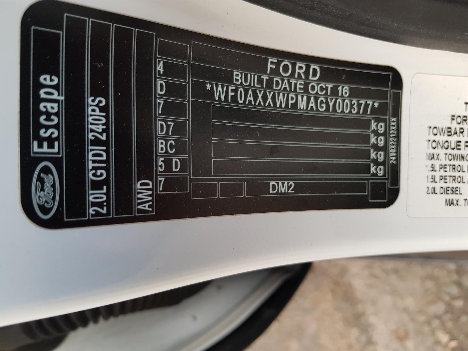 FORD ESCAPE VIN: WF0AXXWPMAGY00377