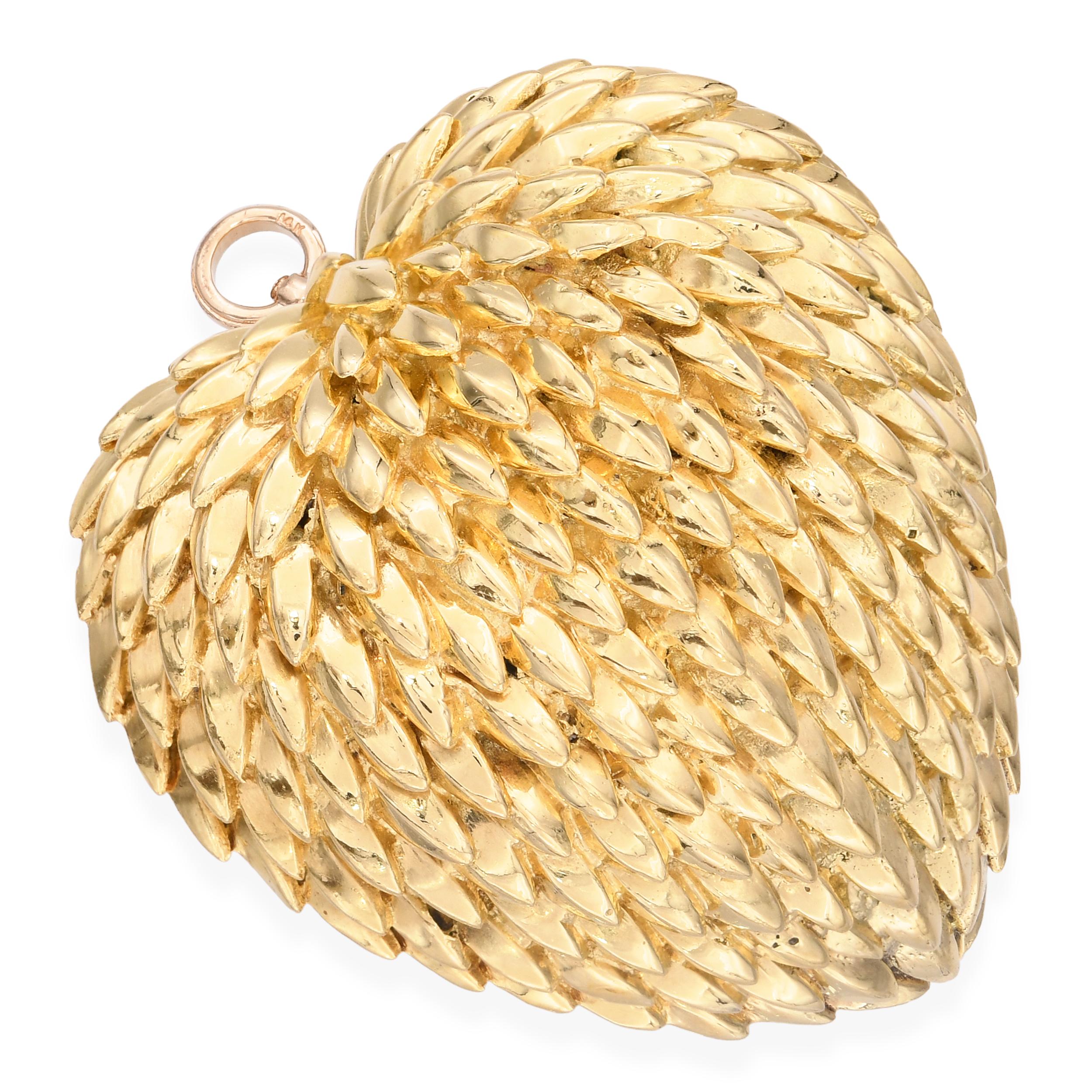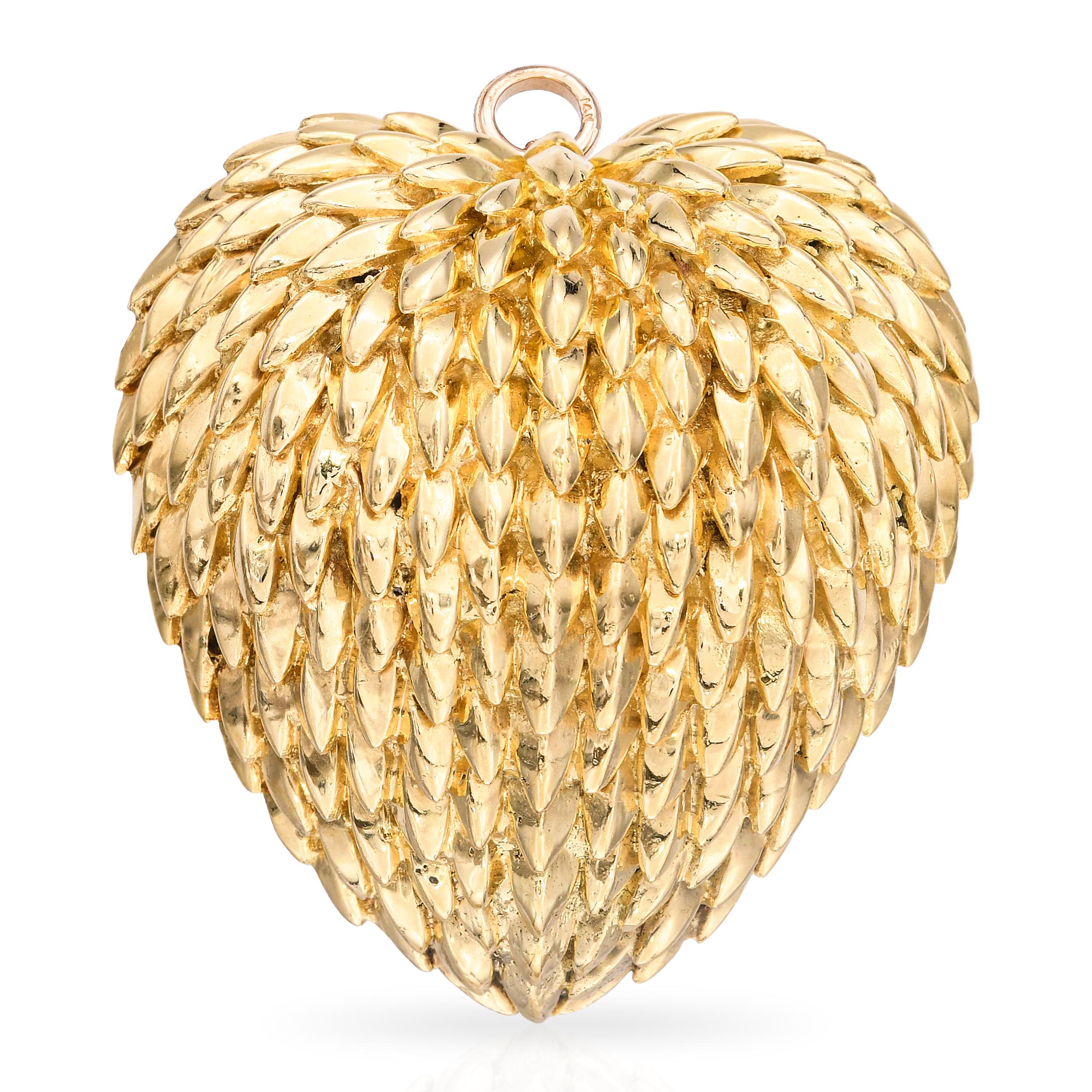 Vintage 1960s Tiffany & Co. 18k Yellow Gold Puffy Heart Pendant Brooch