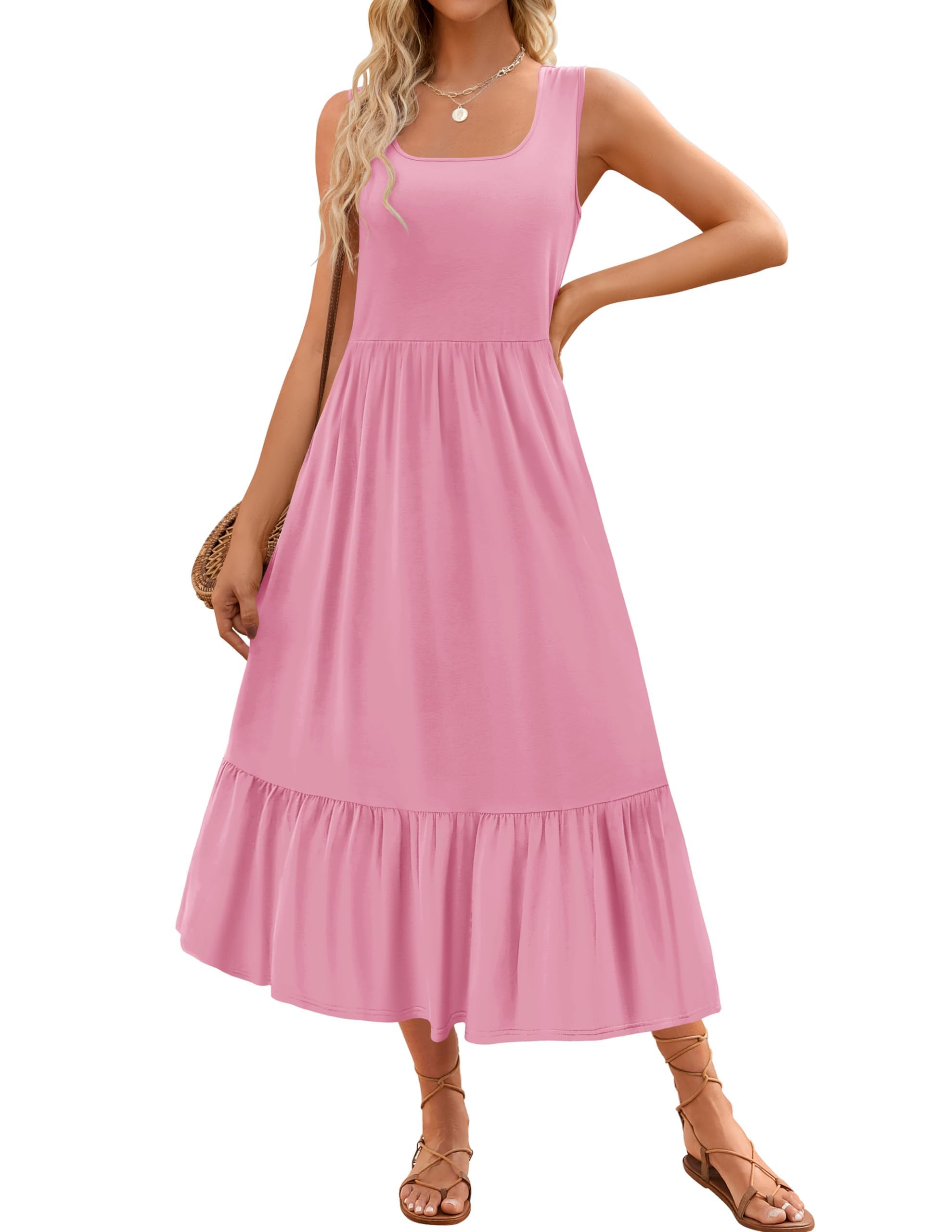 Upgrade your summer wardrobe with the ZESICA Sleeveless Dress and embrace effortless style and comfort. Stay fashionable and confident all season long with this must-have summer dress. This sleeveless square neck dress is ideal for summer, keeping you cool and comfortable while showcasing your fashionable style.