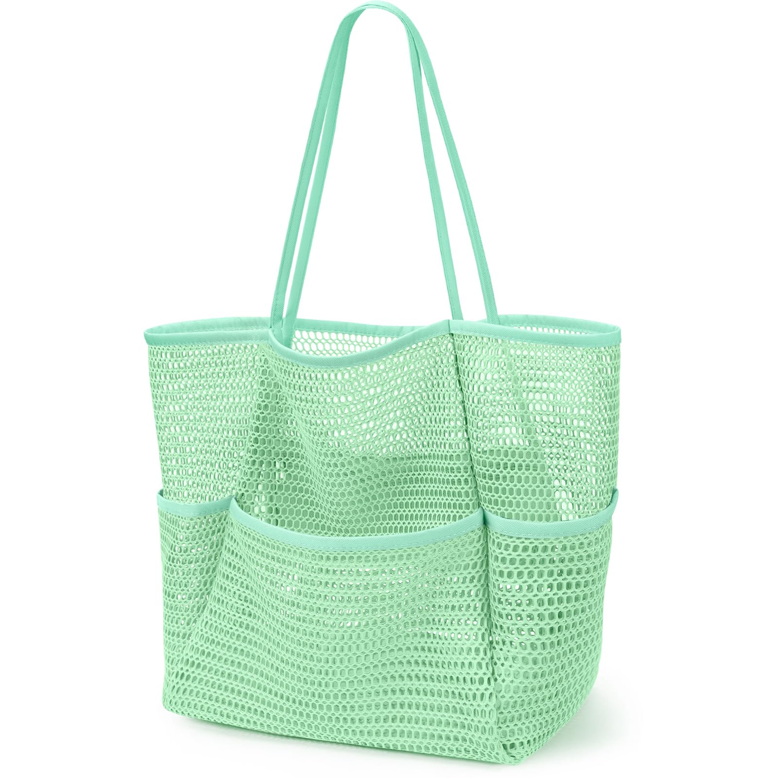 KPX Beach Bag with Mini Pocket, Beach Tote Bags for Women Large Foldable Mesh Swimming Pool Travel Bags - Sandproof (Mint)