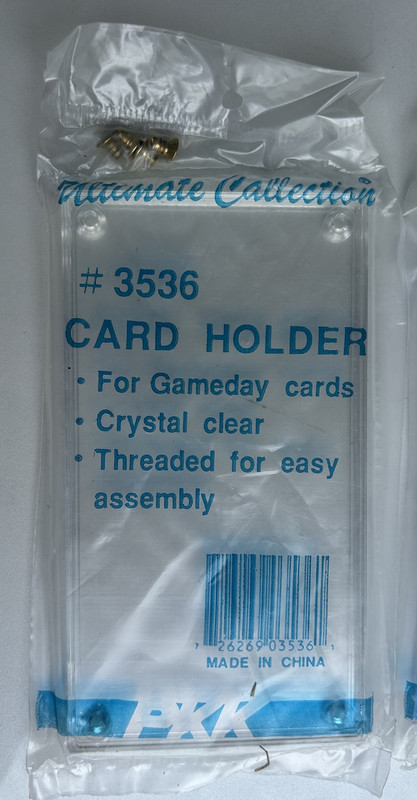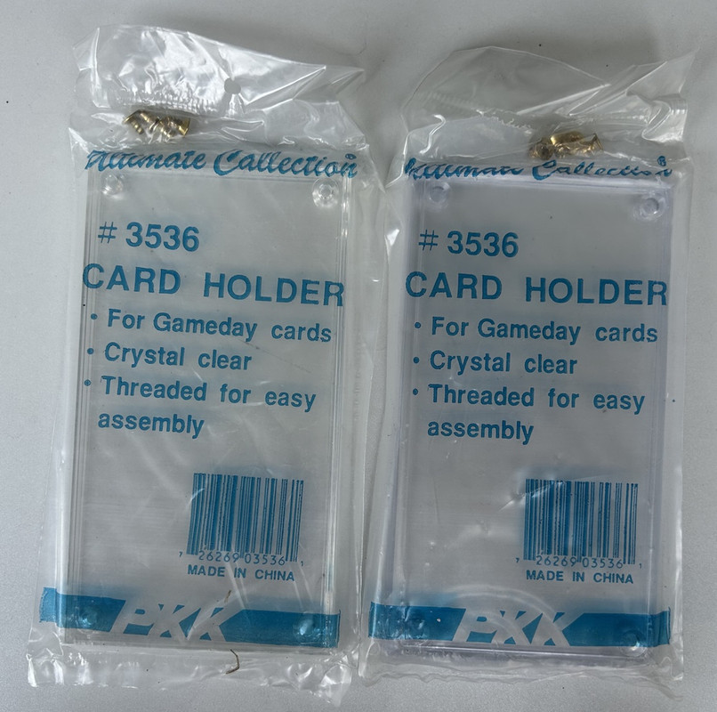 A nice lot of two new Gameday size card holders. These are brand new and still wrapped in plastic paper with all hardware. They have not been used. Pictures are very representative. These will ship very secure in a box. I am not a dealer but a discerning collector who is weeding out my collection. Please feel free to ask questions. Win more than one auction and I will save you on shipping. Winning bidder will pay $5.00 postage and handling for this lot. As always there are no reserves on my auctions. I have been selling on eBay since 1996 so please bid with confidence. Email questions are welcome and as always thanks for looking!