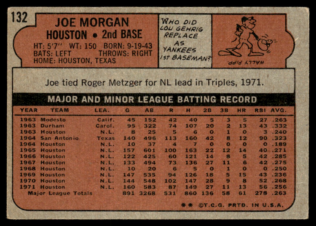 1972 Topps Joe Morgan VG+ Houston Astros #132