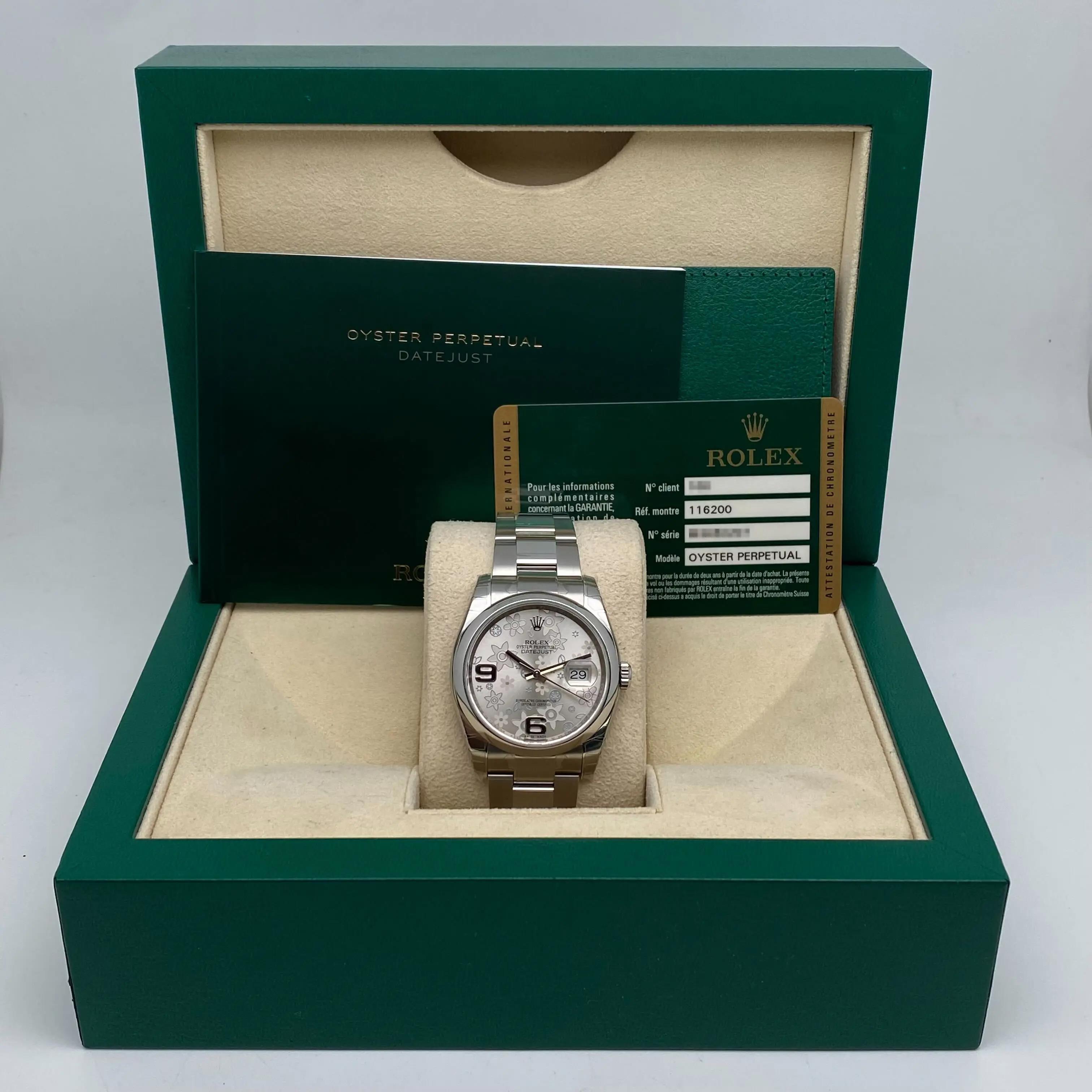 Rolex Datejust 116200 Silver Arabic Floral Dial Steel Unisex Watch Fully Sticker