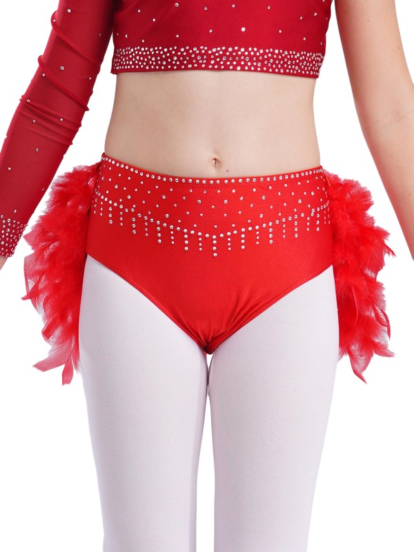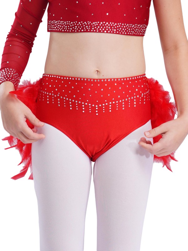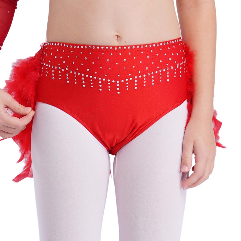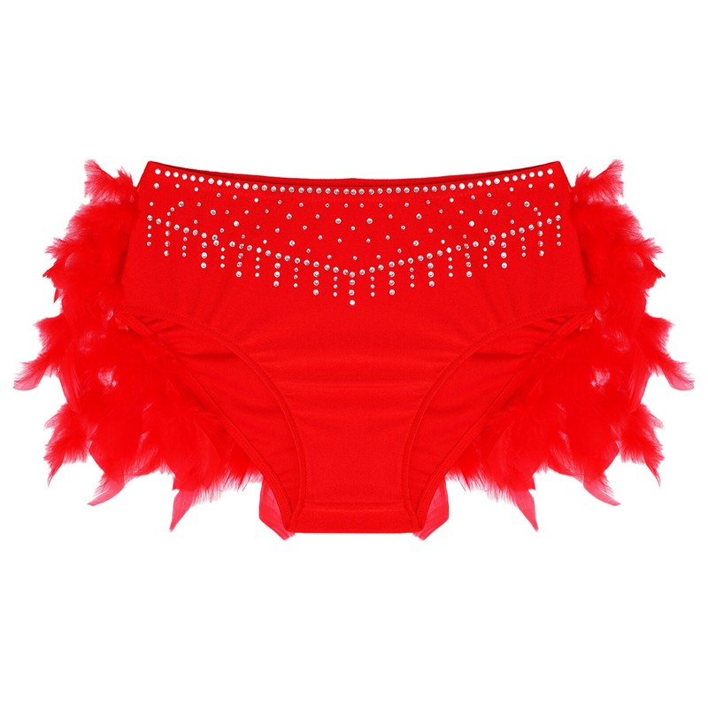Dance briefs are decorated with sparkling rhinestones on the front and feather on the back to make your girl stand out from the show.