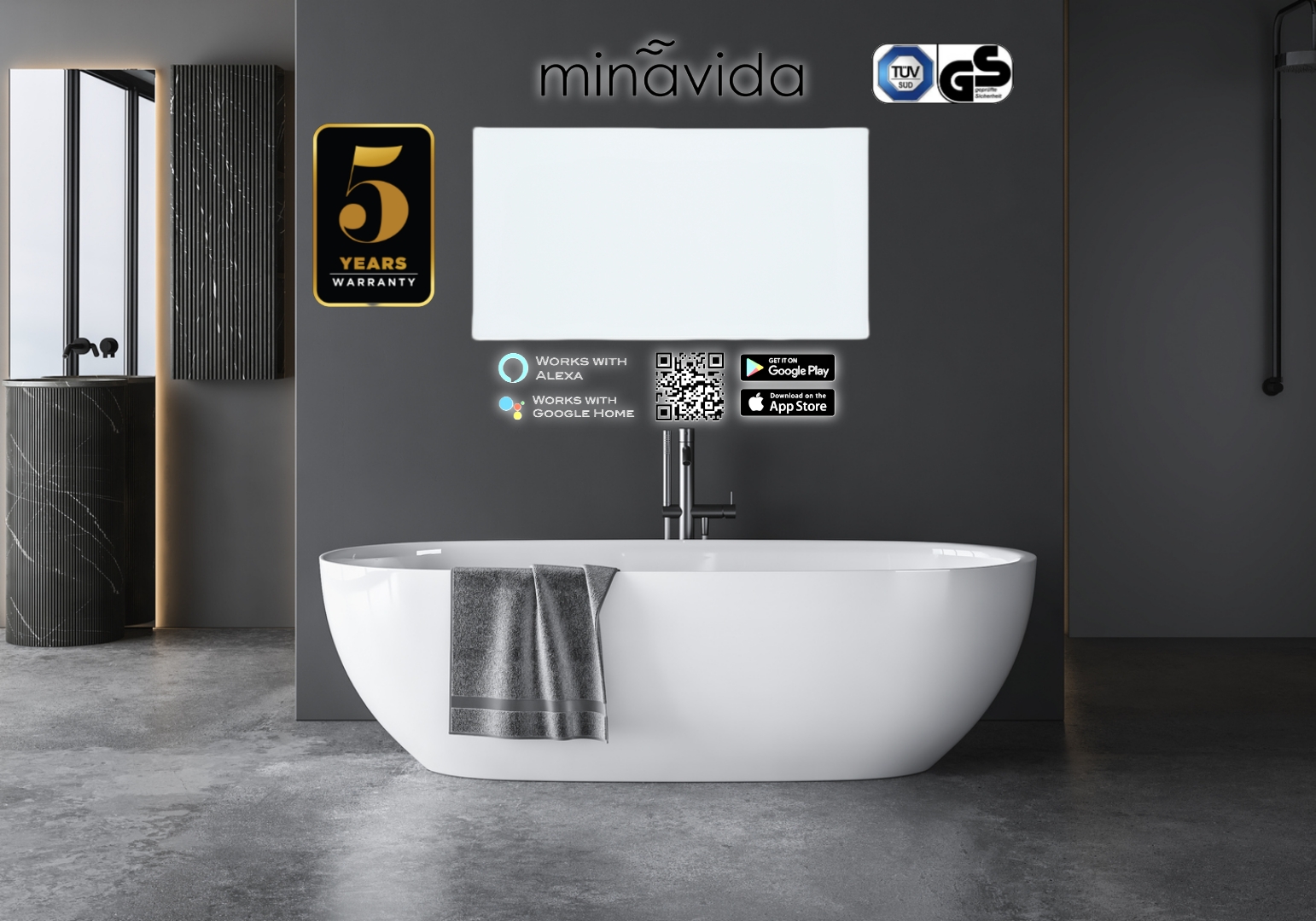 Effizient & sicher Heizen mit einer Infrarot-Glasheizung von Minavida - mit unseren Heizkörpern der MVA-WiFi-Serie holen Sie sich nicht nur angenehme Wärme in ihre vier Wände - diese Wandheizung verfügt zusätzlich über eine hochwertige, attraktive Glasoberfläche, die Sie bequem durch das integrierte Thermostat über Sprachbefehl, App, Fernbedienung und manuelle Bedienung über dem integrierten LCD Display steuern können. Nicht nur effizient - sondern auch noch ein echter Hingucker für ihr Zuhause! Mit diesem Infrarot-Heizkörper wird energiesparendes und einfaches Heizen ein Kinderspiel - beispielsweise durch die Open-Windows-Technologie - durch diese erkennt das Thermostat automatisch einen Temperaturabfall und schaltet dieses in den Energiesparmodus . Natürlich bieten wir ausschließlich Infrarotheizkörper auf Basis höchster Sicherheitsstandards an - weswegen auch all unsere Infrarotheizungen TÜV-zertifiziert und GS-geprüft sind. Die Infrarotheizkörper Minavida MVA-WiFi-500 & MVA-WiFi-700 sind zudem IP44 zertifiziert und somit auch in der Verwendung für Feuchträume (wie bspw. Bad) geeignet! Die Infrarotheizkörper der MVA-WiFi-Serie gibt es in 2 Leistungsstufen (MVA-WiFi-500 = 500 Watt, MVA-WiFi-700 = 700 Watt).