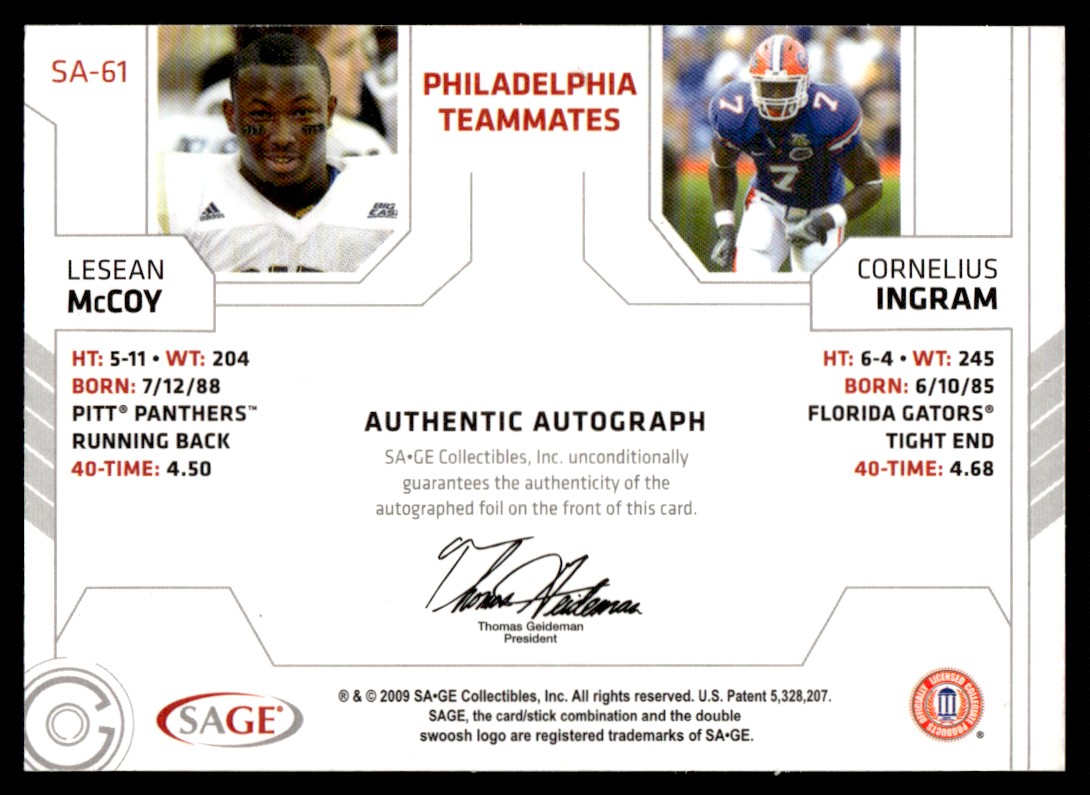 2009 SAGE Squared Dual Autographs LeSean McCoy/Cornelius Ingram Rookie Auto