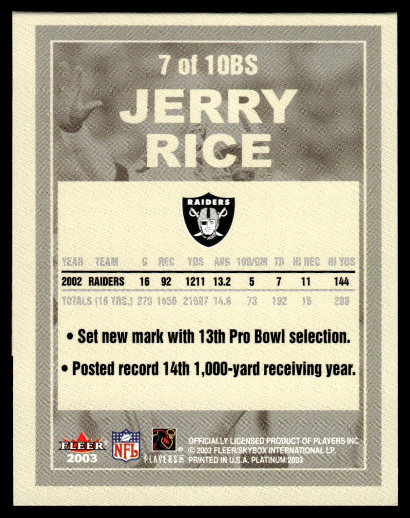 2003 Fleer Big Signs Jerry Rice Oakland Raiders #7