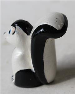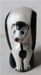 Here's a great miniature Ceramic Porcelain Hand Painted Unmarked sitting up with tail up Skunk Figurine. It is Adorable. It measures about 1 3/4 inches tall and about 2 inches long. It is unmarked-SEE ALL PHOTOS!