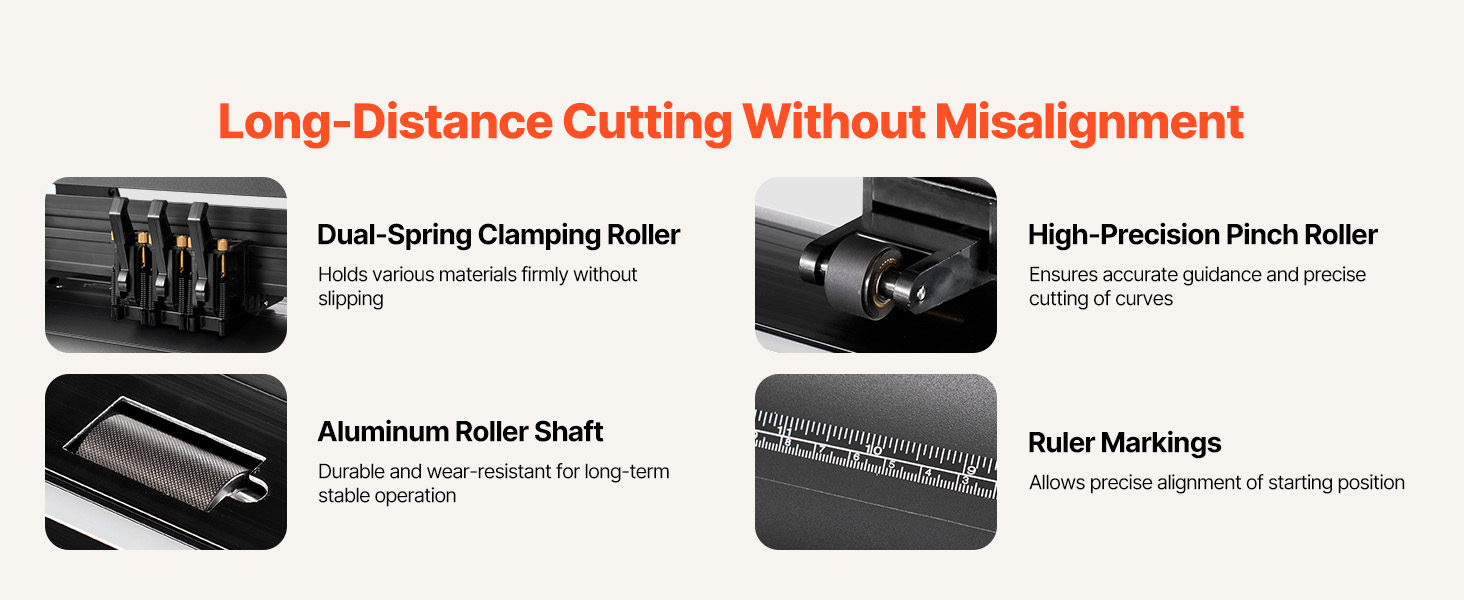 - Accurate Cutting: Advanced contour recognition ensures precision within ±0.1 mm, while dual-spring pinch rollers maintain media stability. This vinyl cutter guarantees consistent tracking, sharp edges, and detailed results, even during extended cutting tasks.