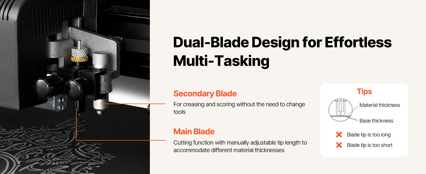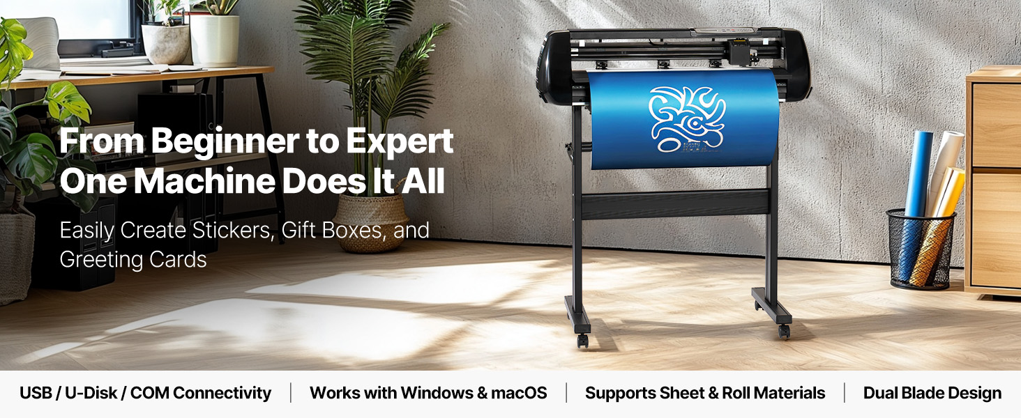 - Dual-Blade Functionality: This vinyl plotter cutter features both primary and secondary blades, enabling simultaneous cutting and drawing or scoring. Eliminate the need for manual blade changes—perform multiple tasks in a single setup, enhancing productivity.