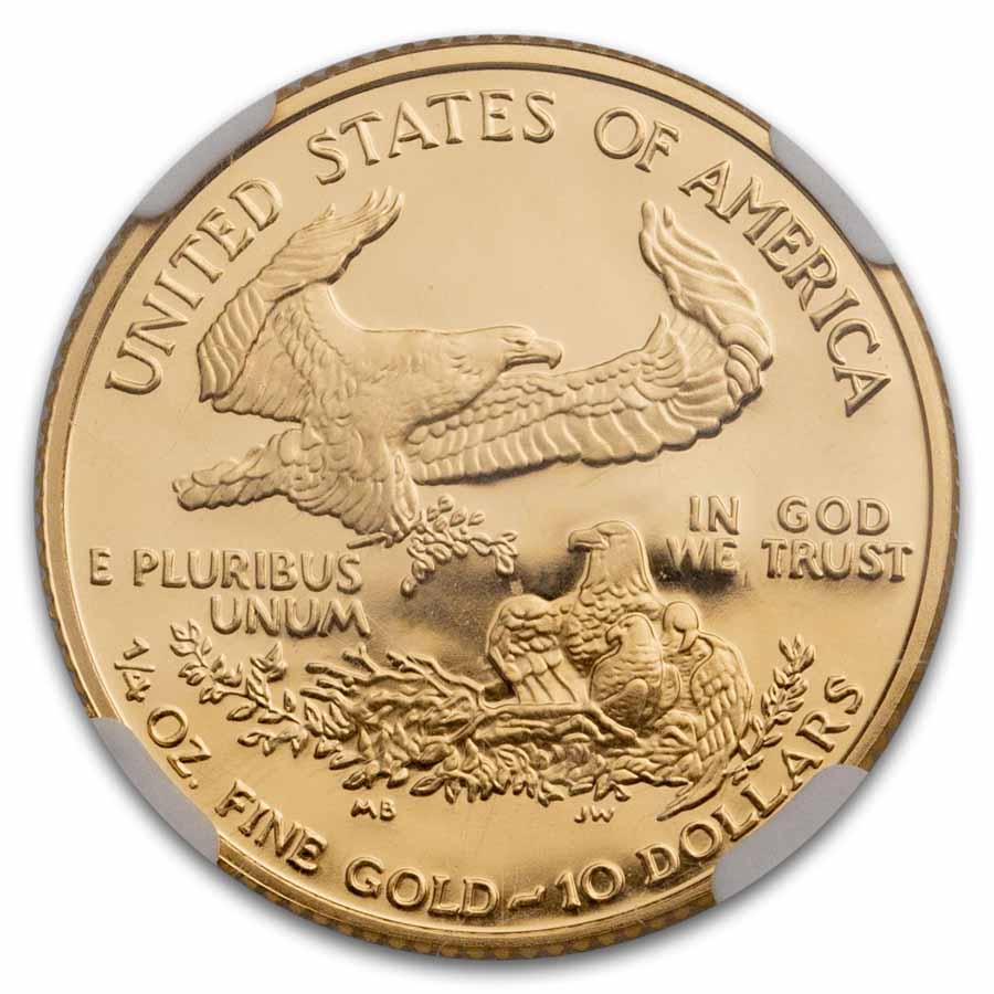 Containing 1/4 oz of Gold and featuring beloved designs, it is easy to see why the Gold Eagle is the most popular Gold coin in the United States. Add this 2000-W 1/4 oz Gold Eagle to your cart today!