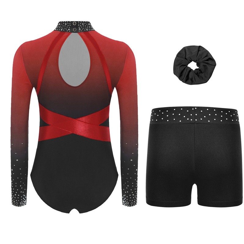 This outfit comes with a hairband and rhinestones waistband shorts. It’s perfect for dance, gymnastics competitions, figure skating, etc.