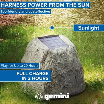 Transform your backyard into an outdoor entertainment paradise! This PAIR of Gemini solar-powered Bluetooth rock speakers delivers incredible sound while seamlessly blending into your garden, patio, or poolside landscape. Completely wireless with eco-friendly solar charging and weather-resistant design.