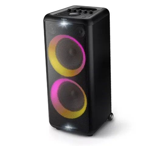 Philips TAX5206 160W Bluetooth Party Speaker with 14 Hours Play, Karaoke Features, Guitar and Mic Input, Party Lights and Trolley Design with Wheels (Black)