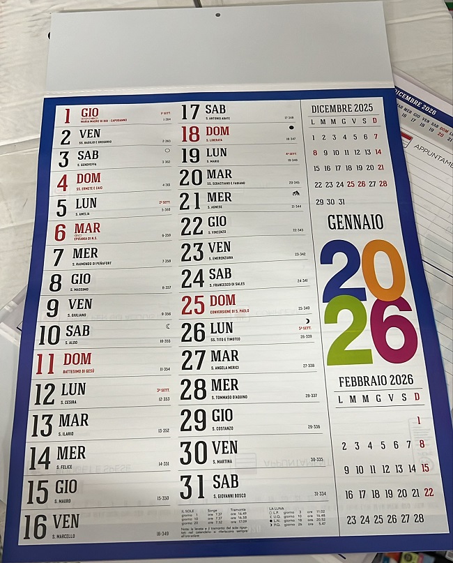 Calendario da muro con foro appendino 2026 Verticale