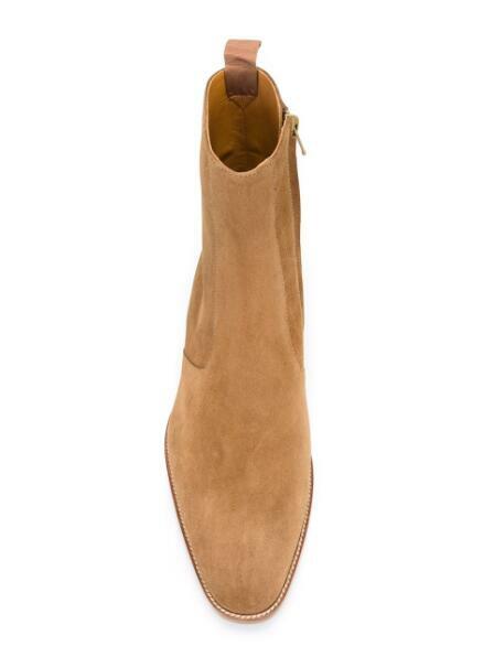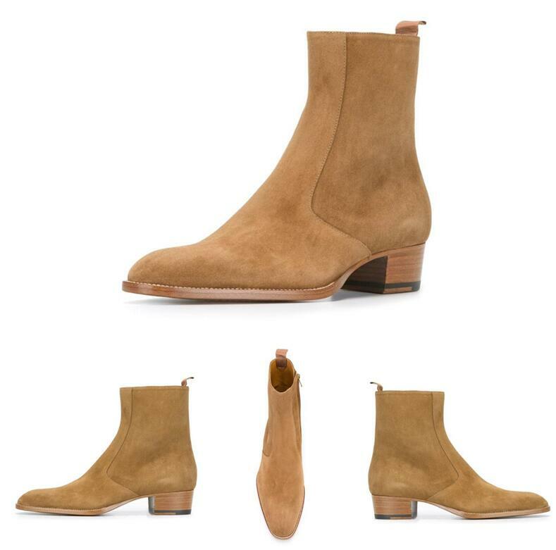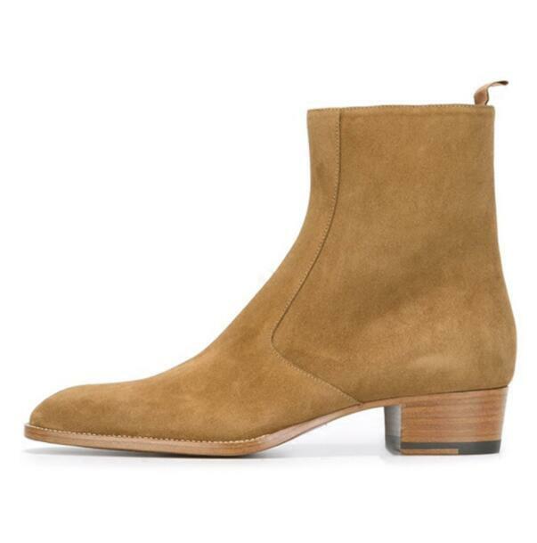 Men's Pointy Toe Pull on Cuban Heel British Genuine Leather Boots Shoes Chelsea