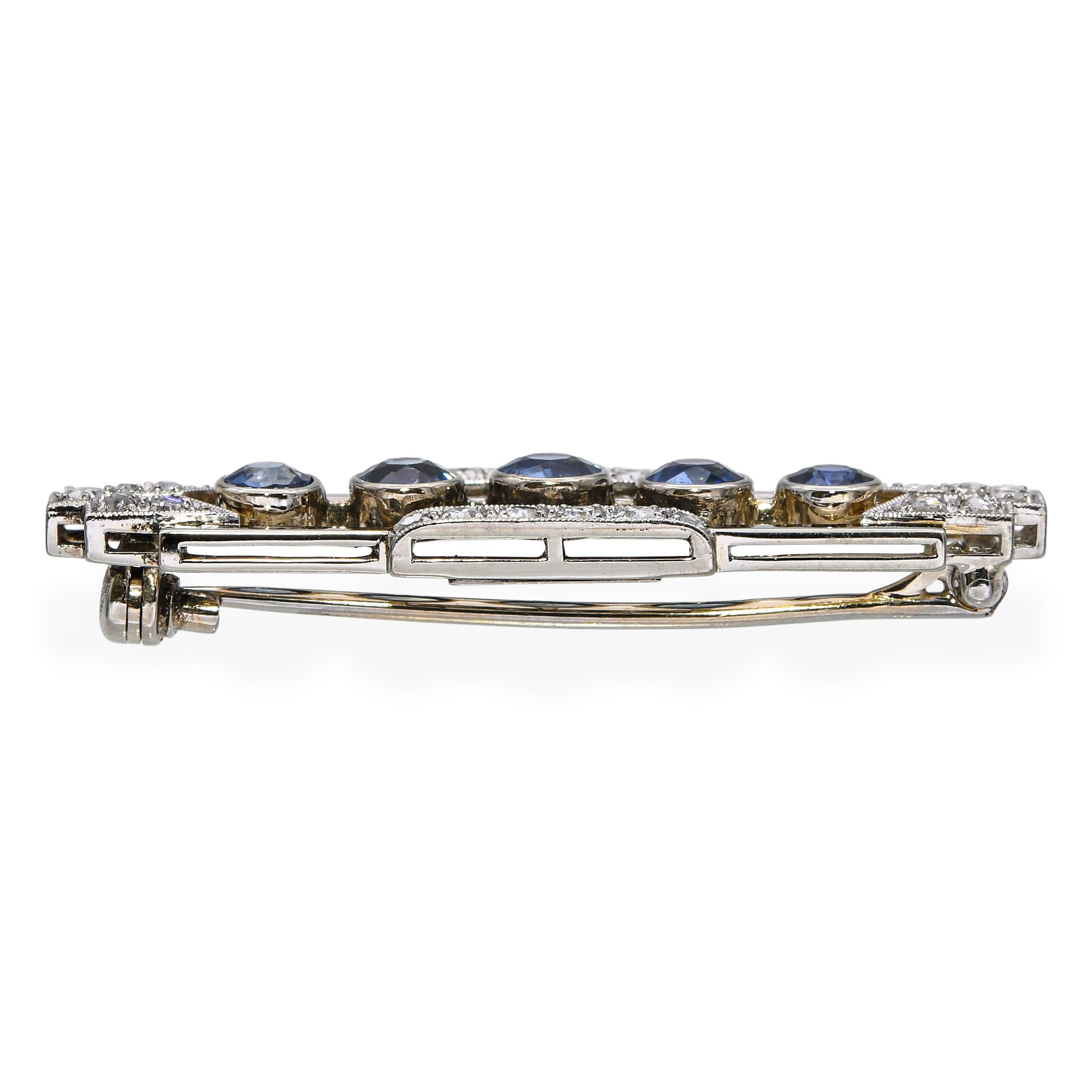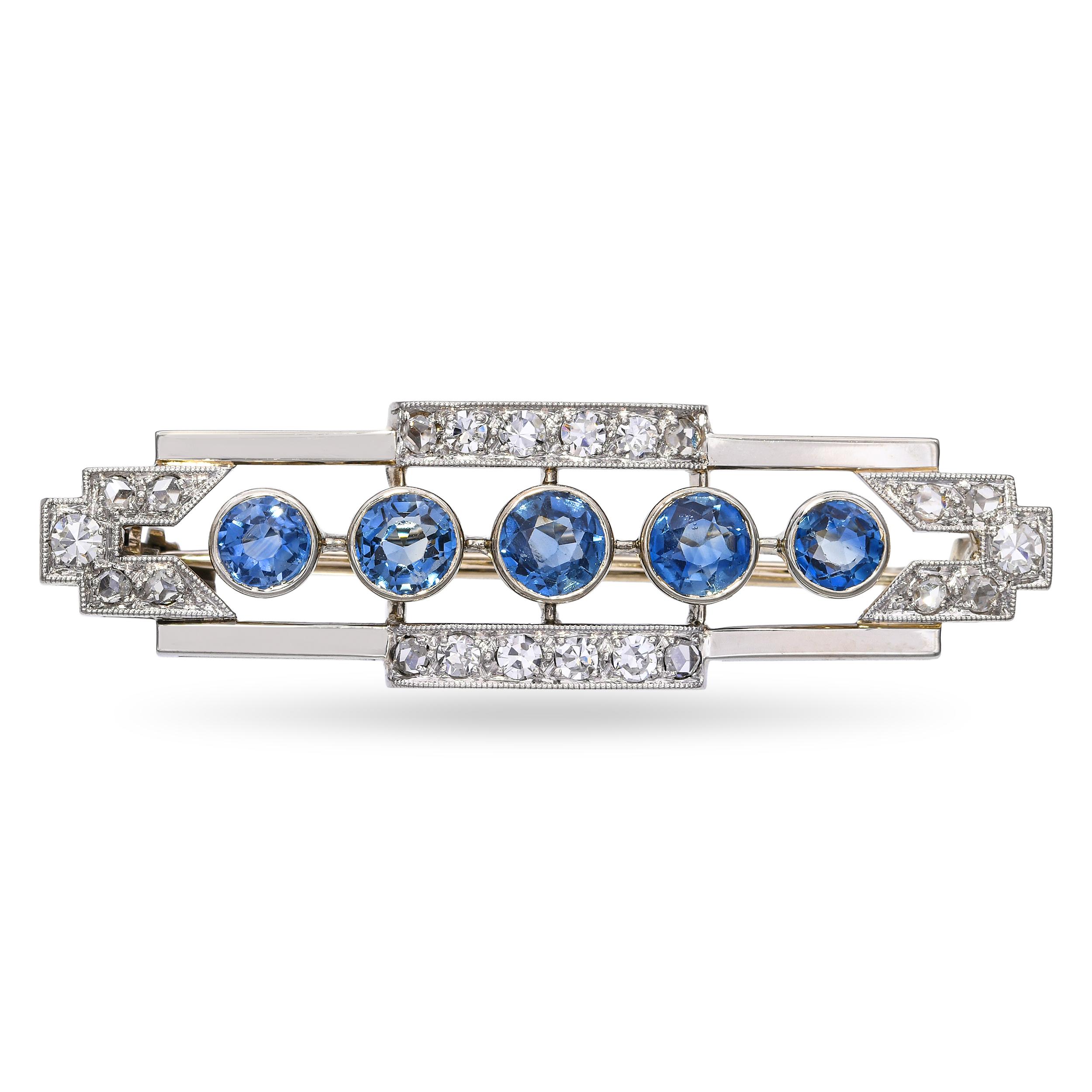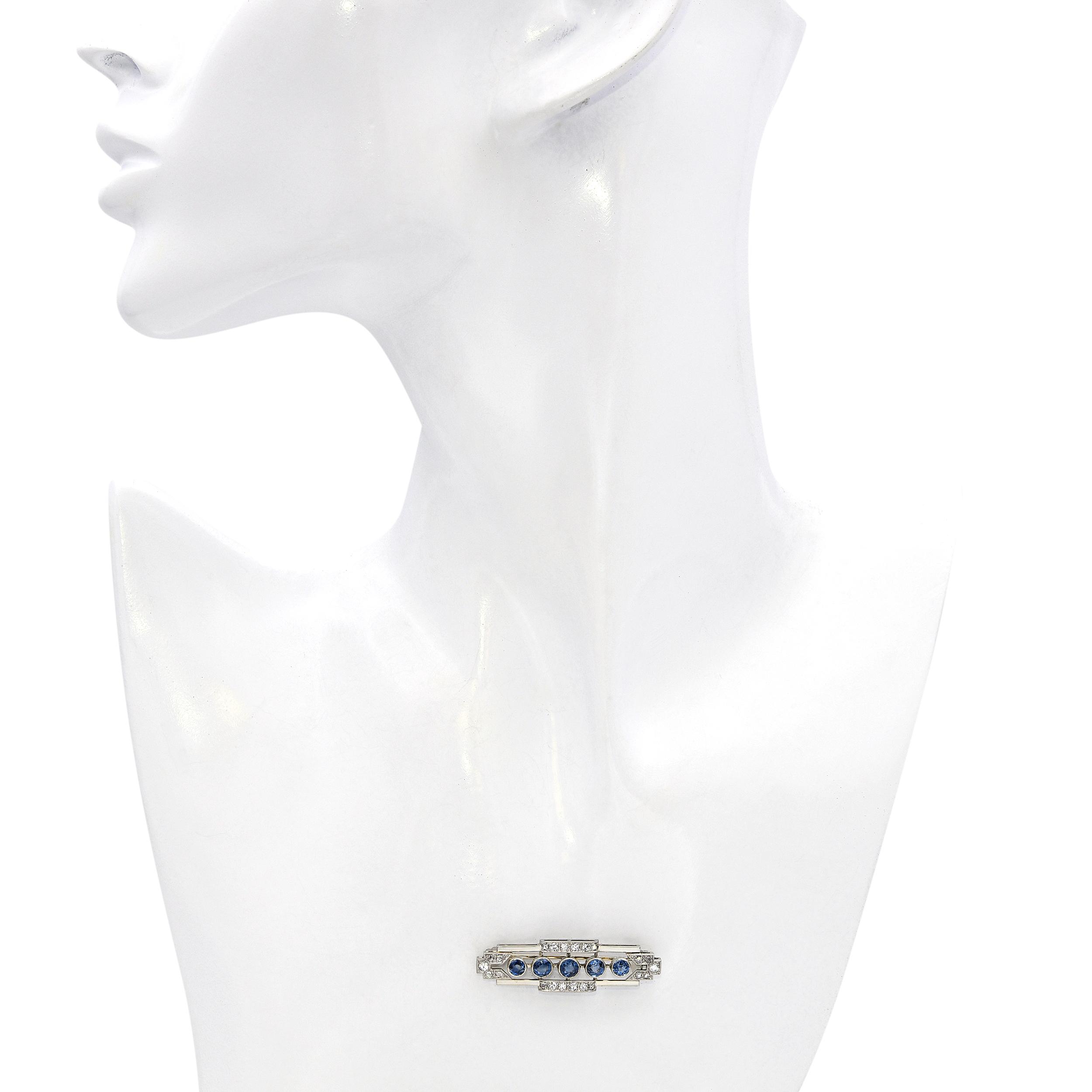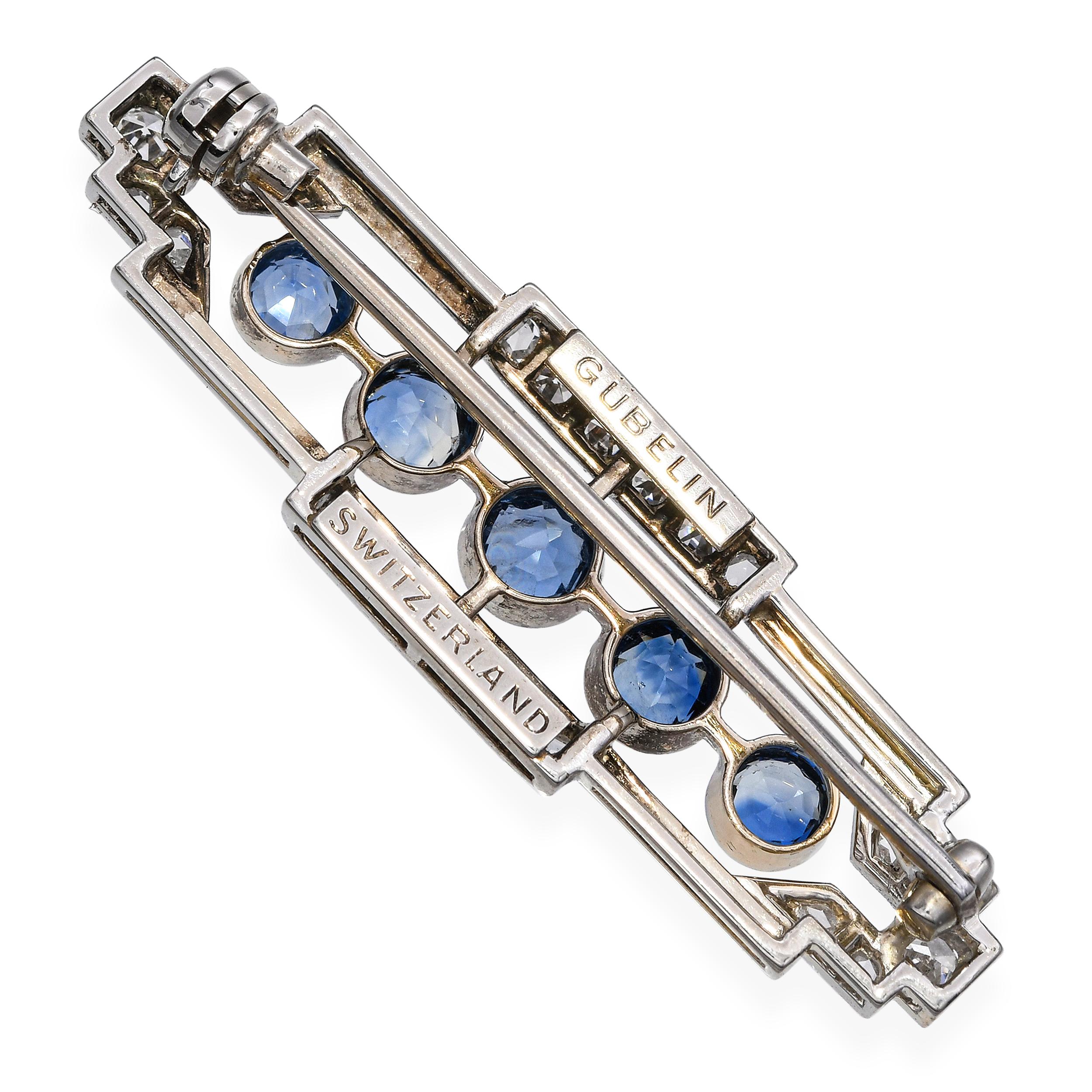 Art Deco Gübelin 18k White Gold Diamond and Sapphire Bar Brooch