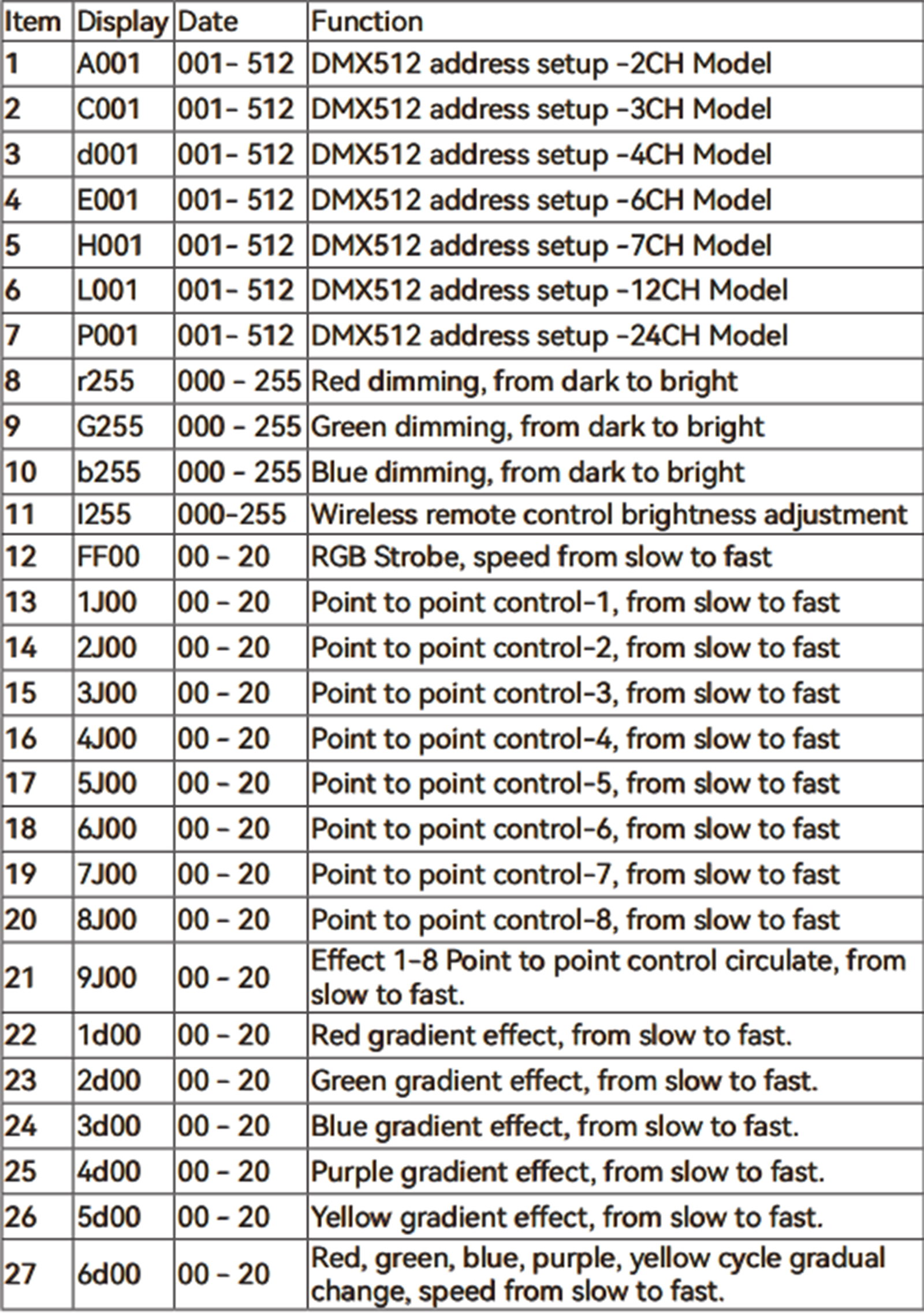 Protocol: standard DMX512 protocol, RDM protocol