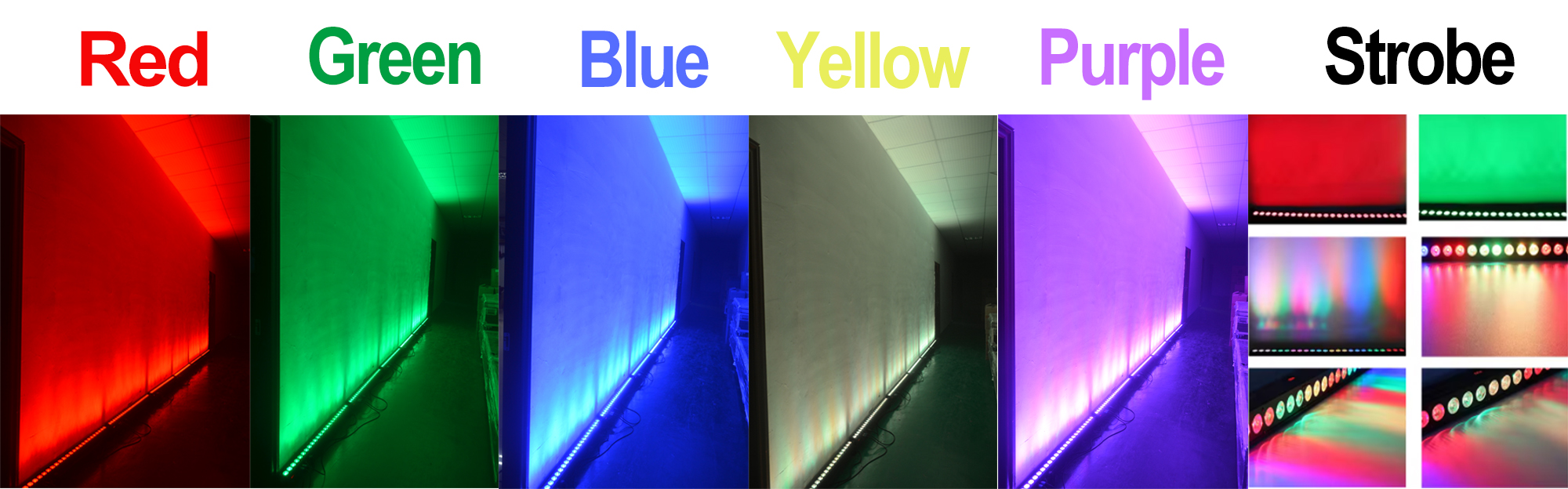 Color effects: red, green, blue, yellow, purple