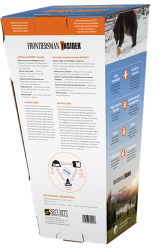 Keep your food safe, and your camp by extension, with the Frontiersman Bear Safe Bear-Resistant Food-Storage Container. A locking lid ensures a water- and air-tight seal that maximizes freshness and prevents odors from escaping to attract bears. Boasting a 11.86L capacity, this food storage is large enough for families and extended trips. A tapered design makes it easy to pack. The high-pressure release valve allows the container to flex when under attack from a bear, further increasing security, plus the durable polypropylene construction is smooth so it's difficult for bears to grasp. Bright orange design means it won't get left behind. When you adventure in bear country, make sure you keep your food and family safe with the Frontiersman Bear Safe Bear-Resistant Food-Storage Container.