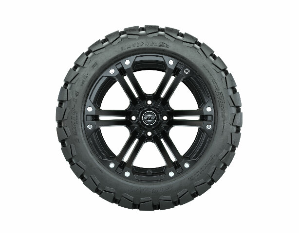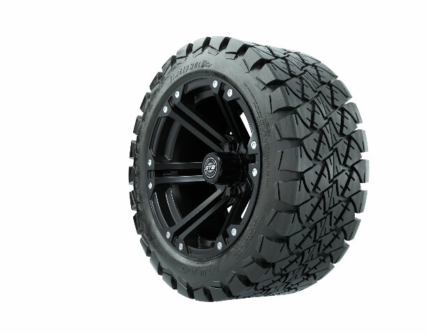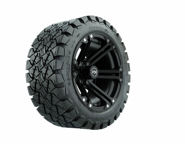 Set of 4 GTW 14" Specter Matte Black Finish Lifted Golf Cart Wheels on 22" Timberwolf All Terrain Tires