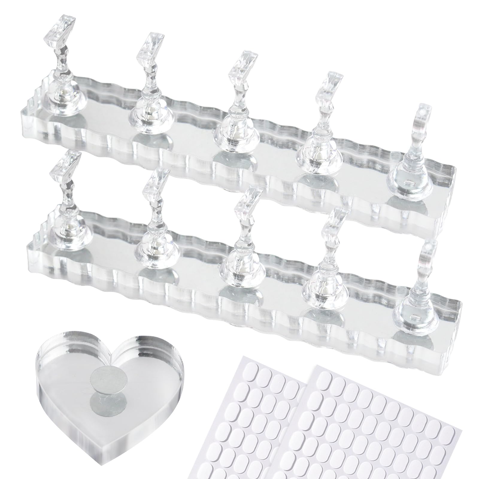 ESUOHYM Nail Stand For Press On Acrylic Strong Magnetic Nail Holder Kit For Painting Nails Tip Arts Display With 200PCS Double-Sided Tape And 1 Heart Shaped Acrylic Magnetic Presson Stands Nail Art Supplies
