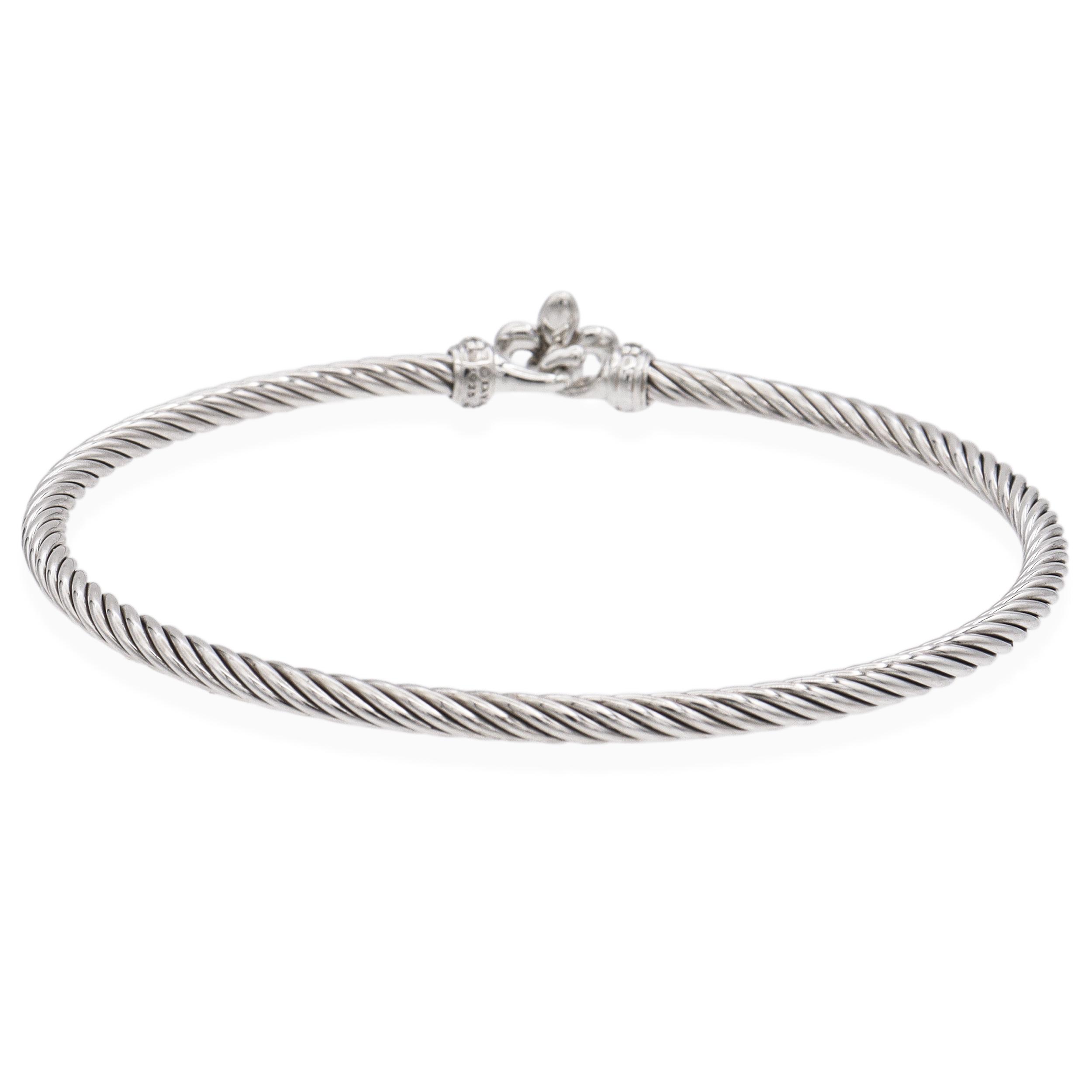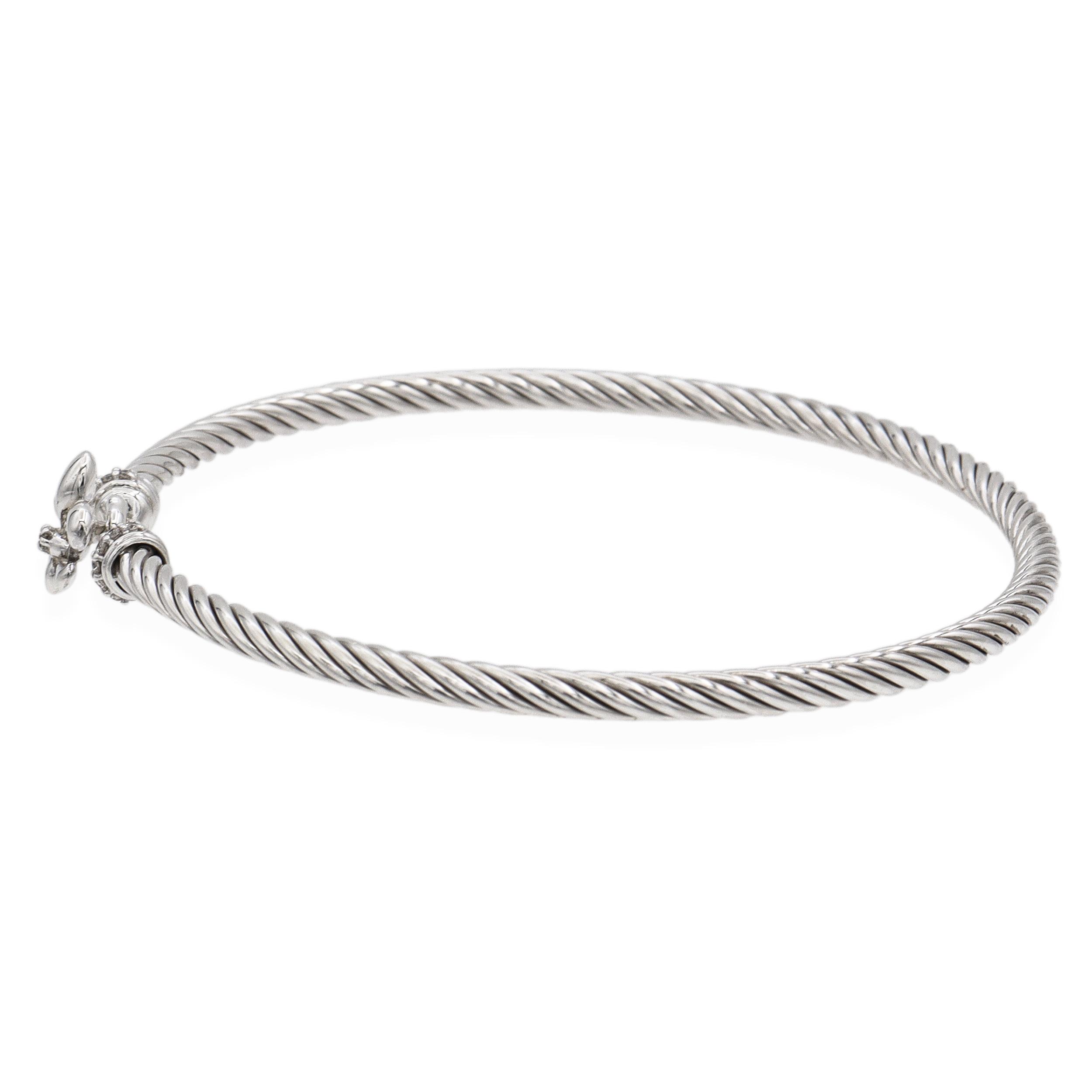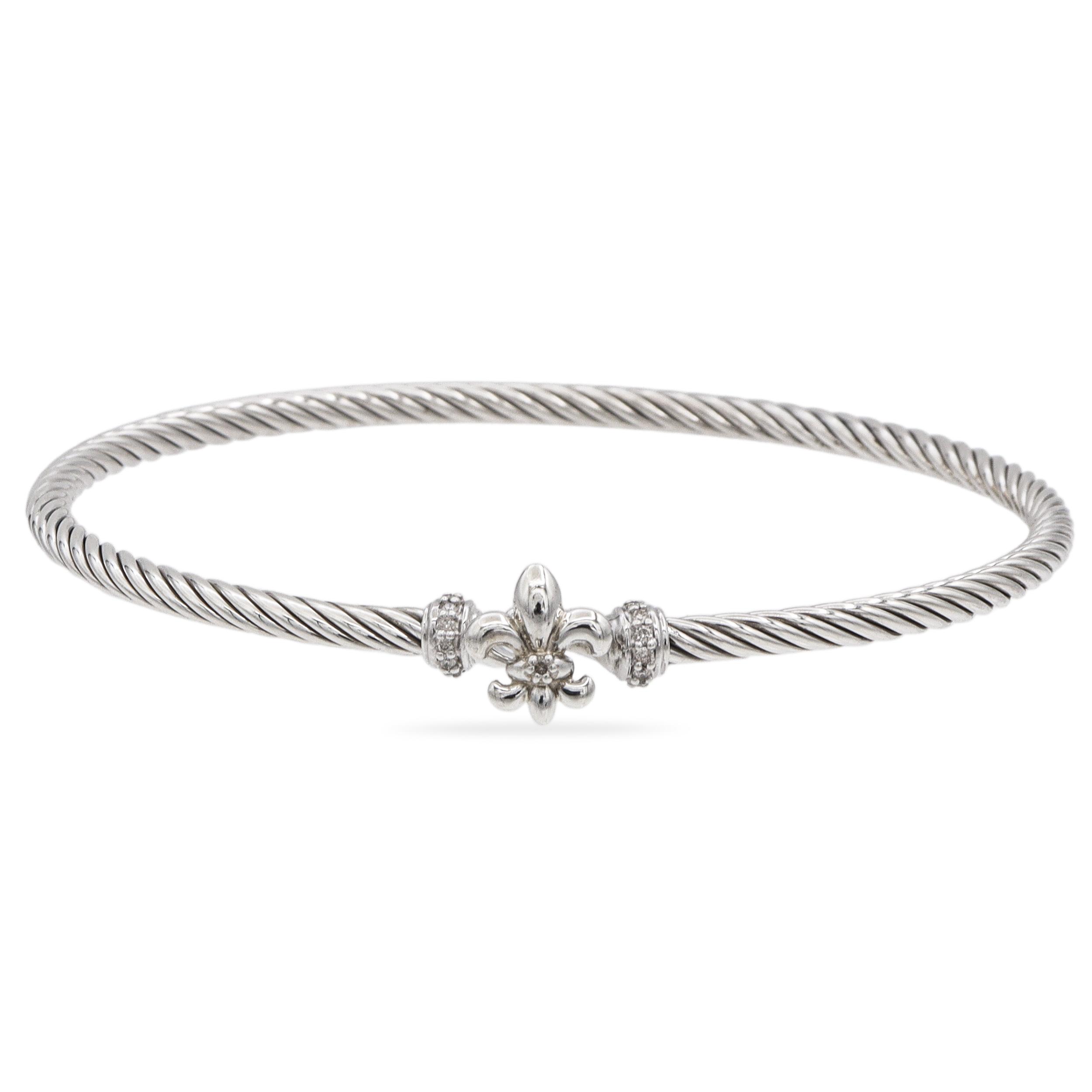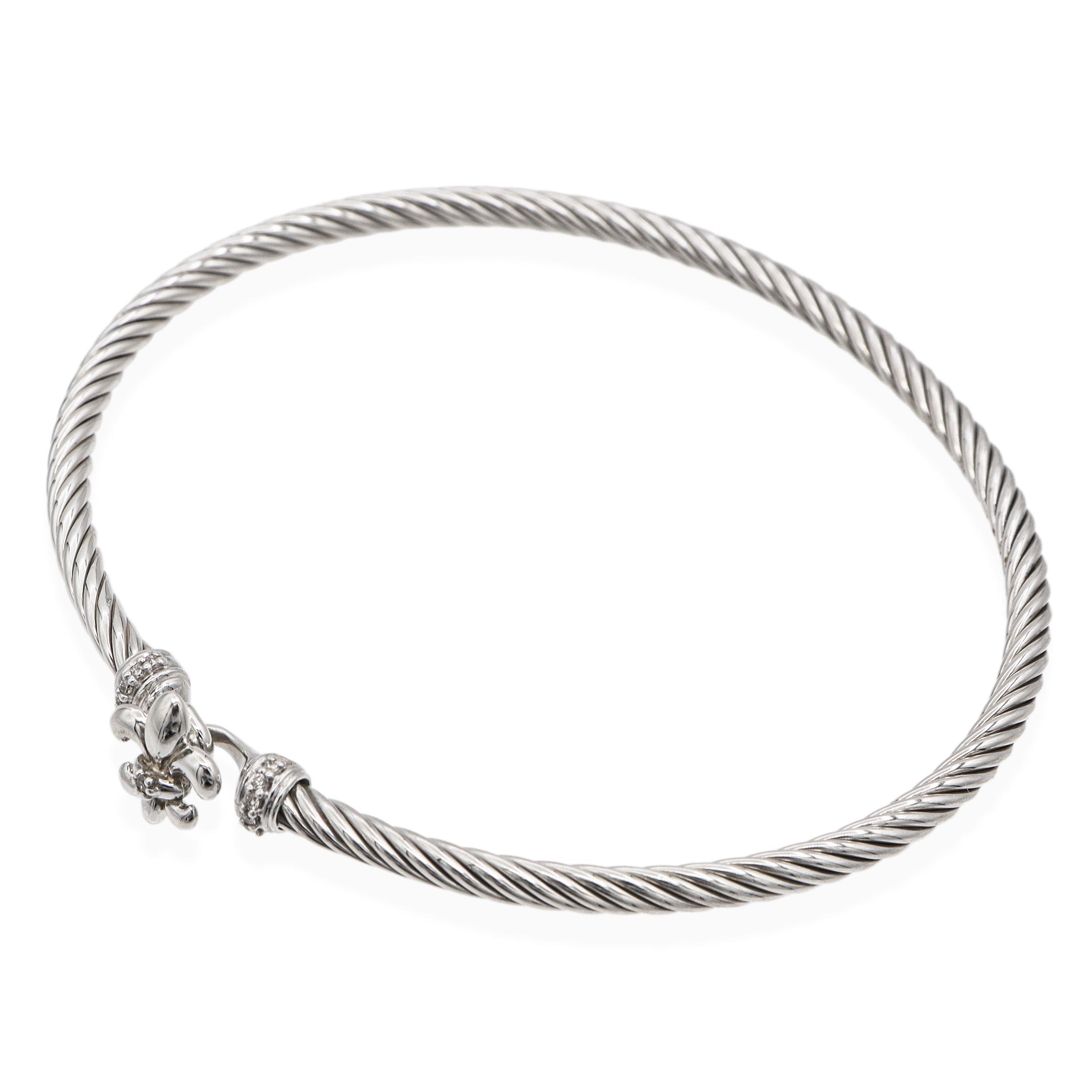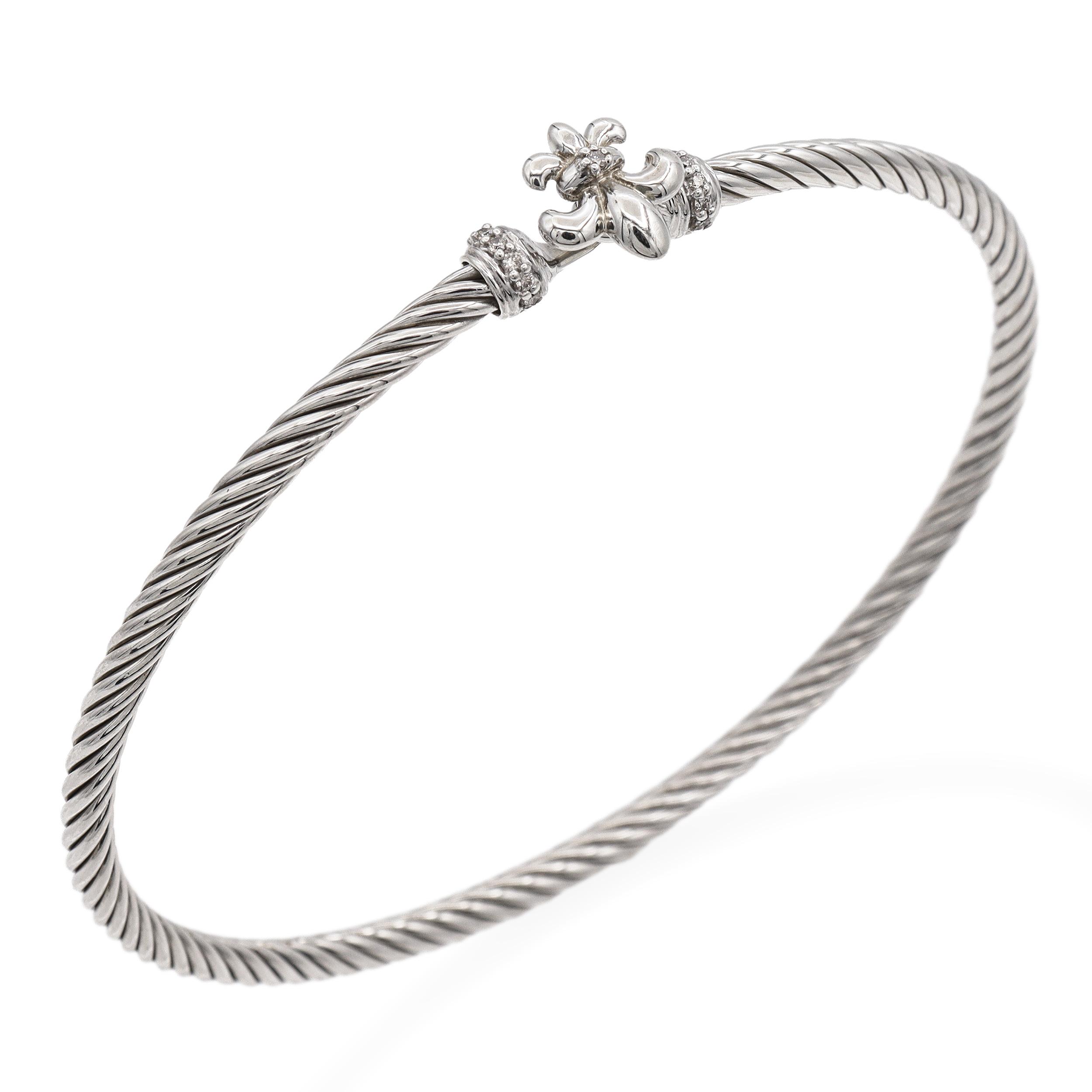 David Yurman Sterling Silver Diamond Fleur-de-Lis Cable Bracelet