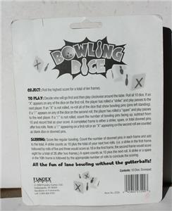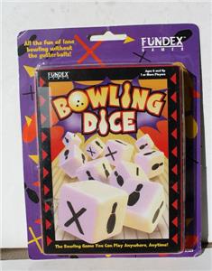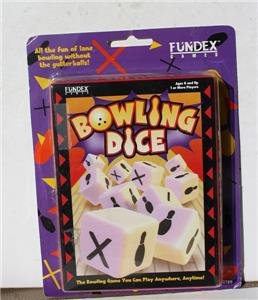 Here is a great 1999 Fundex Bowling Dice Game still sealed in original package 10 dice and score pad. It is in great condition still sealed-SEE ALL PHOTOS. It measures about 6 inches tall 4 1/2 inches wide. Grab this great vintage collectible while you still can it will not last long.