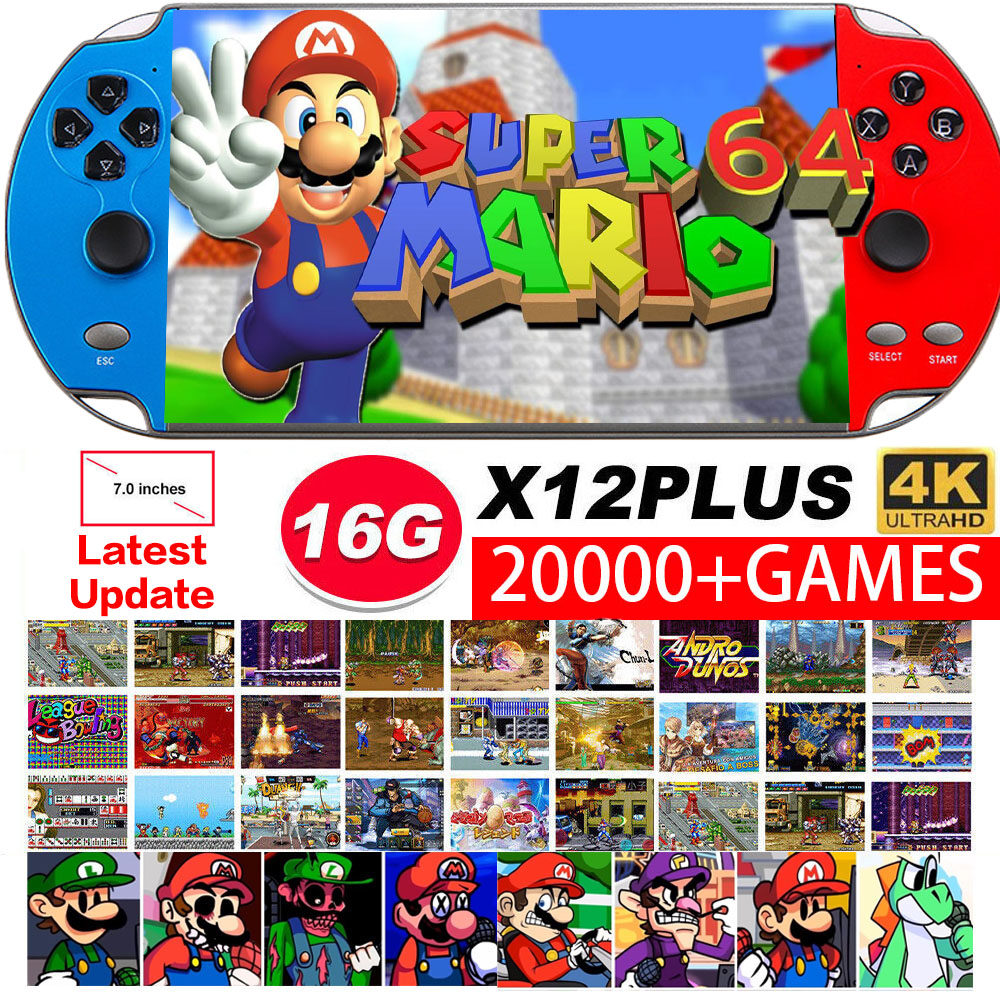 -Built-in a large amount of 10000 games. Built-in 16GB memory, possibility to upload your own games, movies and music. Supports game formats from consoles: PEGASUS, GBA, NES, SFC, Nintendo Entertainment System.