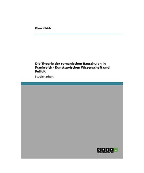 Studienarbeit aus dem Jahr 2005 im Fachbereich Kunst - Architektur, Baugeschichte, Denkmalpflege, Note: 1, Humboldt-Universität zu Berlin, Veranstaltung: Hauptseminar: Kunstgeographie. Wissenschaft und Politik in der kunsthistorischen Forschung, Sprache: Deutsch, Abstract: Ich möchte in dieser Arbeit versuchen zu klären, wie das System der Bauschulenentstand und warum es als Ganzes in der französischen Forschung nicht vor den 30er Jahrendes 20. Jahrhunderts in Frage gestellt wurde. Im ersten Teil werde ich die Entstehung undEntwicklung der Theorie der Bauschulen in der französischen Archäologieforschung des 19.Jahrhunderts und der ersten Jahrzehnte des 20. Jahrhunderts zeigen. Ich werde die Theoriender einzelnen Autoren vorstellen und versuchen, ihre Argumente aufzuzeigen, mit denen siebelegen wollten, warum die romanische Architektur von den regionalen Gegebenheitenabhängig war.[...]